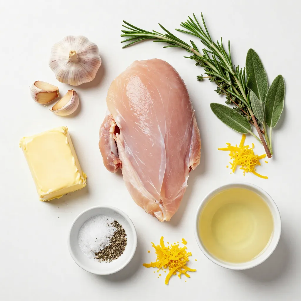 – Make the Herb Butter Mixture: In a bowl, mix 1/2 cup softened butter with 4 minced garlic cloves, 2 tablespoons chopped rosemary, 2 tablespoons chopped thyme, 1 tablespoon chopped sage, 1 tablespoon lemon zest, salt, and pepper. Stir until well combined.