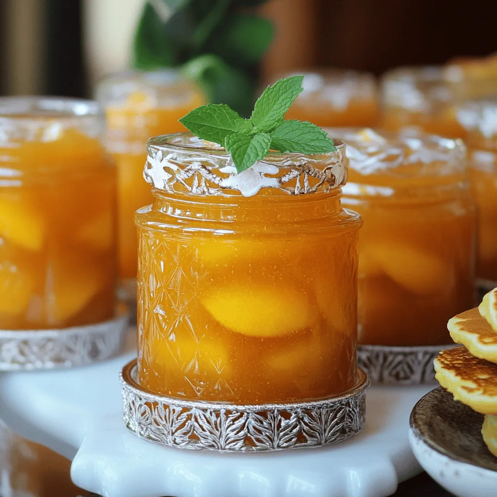 Ripe Peaches: Selection and Preparation Choosing ripe peaches is key for a great jam. Look for peaches that are soft but not mushy. Their skin should be slightly fuzzy and fragrant. Wash them under cold water to remove dirt. Peel and dice the peaches into small pieces. This helps them cook evenly and release their juices. Sugar: Role in Flavor and Preservation Sugar is important for flavor and preservation. It adds sweetness and helps the jam thicken. It also keeps the jam from spoiling too fast. Use granulated sugar for the best results. You will need about 2 cups for this recipe. Additional Ingredients: Lemon Juice, Water, Pectin, Vanilla, Salt - Lemon Juice: 1 tablespoon adds brightness and helps balance the sweetness. - Water: 1/4 cup helps dissolve the sugar and fruit. - Pectin: 1 packet (1.75 oz) is key for thickening the jam. - Vanilla Extract: 1 teaspoon adds a warm flavor note. - Salt: A pinch enhances all the flavors in the jam. These ingredients come together to create a fresh and tasty peach jam. For the full recipe, check out the detailed steps later in the article. Washing and Dicing Peaches Start by washing your peaches under cool water. This removes dirt and pesticides. Next, peel the peaches with a knife. Slice them into small pieces. Dicing helps the fruit break down during cooking. Aim for about six ripe peaches for this recipe. Combining Ingredients in a Pot In a large pot, add the diced peaches, two cups of sugar, one tablespoon of lemon juice, and a quarter cup of water. Stir gently until the sugar starts to dissolve. Let this mixture sit for about thirty minutes. This allows the peaches to release their natural juices, making your jam extra flavorful. Boiling and Dissolving Sugar Place the pot on medium heat. Bring the mixture to a boil while stirring often. This step prevents the mixture from sticking to the bottom of the pot. Boil for about five minutes, until the mixture thickens and bubbles. Adding Fruit Pectin: Timing and Techniques Once the mixture is boiling, add the fruit pectin. Stir it in well and keep boiling for another five minutes. Stir constantly to ensure the pectin dissolves evenly. This step is key for getting the perfect jam consistency. Filling Jars: Headspace and Techniques After cooking, remove the pot from heat. Stir in the vanilla extract and a pinch of salt. Then, skim off any foam from the surface. Pour the hot peach jam into sterilized jars. Leave about a quarter inch of headspace at the top of each jar. This space allows for expansion during sealing. Processing in a Boiling Water Bath Seal the jars tightly with lids. If you want to preserve your jam long-term, process the jars in a boiling water bath for ten minutes. This step helps seal the jars and keeps your jam fresh. After processing, let the jars cool completely at room temperature before storing. For the full recipe, check out the details above! Ripeness Indicators Choose peaches that are slightly soft. They should smell sweet and fruity. Look for a golden hue, not green. Avoid hard or bruised peaches. When you press gently, they should yield a little. Organic vs. Conventional Peaches Organic peaches are often more flavorful. They are grown without harmful chemicals. If possible, choose organic for the best taste. Conventional peaches can also be good, but check for freshness. Methods for Sterilizing Jars and Lids To keep your jam safe, you must sterilize jars. Boil jars and lids in water for 10 minutes. Let them air dry on a clean towel. You can also run them through a hot dishwasher. Dealing with Foaming or Separation Foaming can happen when you cook the jam. To reduce foam, skim it off with a spoon. If your jam separates, stir it gently to mix again. Proper cooking time is key to avoid this. {{image_2}} You can change the taste of your homemade peach jam in fun ways. One great mix is peach-mango jam. Just add diced mango to your peach mixture. This adds a sweet and tropical twist. You will love how the flavors blend! Another option is spiced peach jam. Add a sprinkle of cinnamon or nutmeg to your mix. This gives your jam a warm, cozy flavor. It’s perfect for fall mornings or holiday treats. If you want to try different sweeteners, honey or maple syrup work well. They add a unique taste to your jam. Use about 1.5 cups of honey or maple syrup instead of sugar. This will change the flavor slightly, but it will still be sweet and delicious. You have two main methods for preserving your jam: freezing or canning. Freezing is simple and keeps your jam fresh. Just pour it into freezer-safe containers, leaving space at the top. It will last for up to a year in the freezer. Canning is another great option. It allows you to store your jam at room temperature. After filling your jars, process them in a boiling water bath for about 10 minutes. This will help kill any bacteria and seal the jars tight. Both methods keep your peach jam tasty and safe to eat! Store your homemade peach jam in a cool, dark place. You can keep it at room temperature. If you open a jar, always put it in the fridge. The cold helps keep it fresh for longer. How long does it last? If sealed well, your jam can last for up to a year. Once opened, it stays good for about three weeks in the fridge. Check for any off smells or colors. If you see mold on the top, throw it away. A change in texture can also mean it's time to discard the jam. Always trust your senses. You can tell if the jam sets by doing a simple test. Take a small spoon of the hot jam and place it on a cold plate. Let it sit for a minute. Then, run your finger through the jam. If it holds its shape and does not run back together, it has set well. If it’s still runny, cook it for a few more minutes. It’s important to stir often as it cooks to prevent burning. Yes, you can use frozen peaches. Just make sure to thaw them completely before use. Drain any excess liquid that comes from thawing. Frozen peaches may be softer than fresh ones, but they still wo