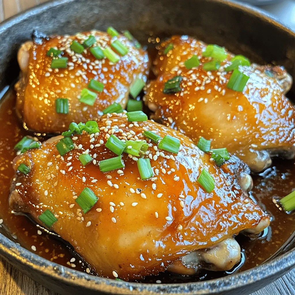 For plating, arrange the chicken thighs neatly on a plate. Drizzle some sauce over the top. Add green onions and sesame seeds for a pop of color. This makes your dish look as good as it tastes.