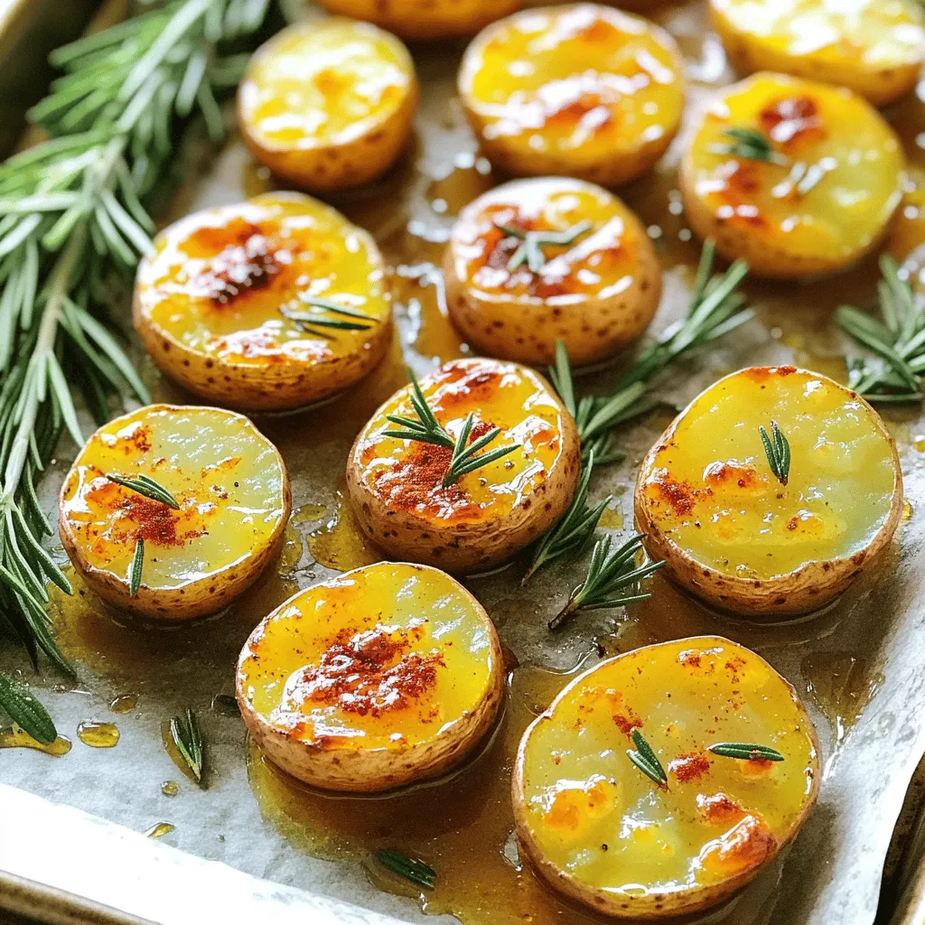 - 2 pounds baby potatoes, halved - 1/4 cup honey - 3 tablespoons Dijon mustard - 3 tablespoons olive oil - 2 cloves garlic, minced - 1 teaspoon paprika - Salt and pepper to taste - Fresh rosemary or thyme for garnish In this dish, baby potatoes are the star. Their small size makes them tender and easy to eat. Honey and Dijon mustard add a sweet and tangy flavor that makes this dish stand out. Olive oil keeps the potatoes moist and helps them roast well. Minced garlic adds depth, while paprika gives a nice touch of spice. Lastly, salt and pepper balance the flavors perfectly. Fresh herbs like rosemary or thyme give a lovely finish. - Additional seasonings (paprika, pepper, etc.) - Fresh herbs for garnish - Alternative sweeteners You can play with flavors by adding more spices. For example, a pinch of smoked paprika can add a smoky taste. Fresh herbs, like parsley or chives, can brighten the dish. If you want to switch things up, you can use maple syrup or agave instead of honey. These tweaks let you make this dish your own while keeping it simple and tasty. For the full recipe, check out the details above. First, set your oven to 425°F (220°C). This high heat helps create crispy potatoes. While the oven warms, grab a baking sheet and line it with parchment paper. This step makes clean-up a breeze later. Now, take your baby potatoes and cut each one in half. This helps them cook evenly and absorb the honey mustard flavor well. In a large bowl, mix together 1/4 cup of honey, 3 tablespoons of Dijon mustard, and 3 tablespoons of olive oil. Whisk these until they form a smooth sauce. Next, add 2 cloves of minced garlic, 1 teaspoon of paprika, and some salt and pepper. Mix everything well to ensure the flavors blend. Now, add the halved potatoes to the honey mustard sauce. Toss them gently until they are fully coated. Then, spread the potatoes evenly on the lined baking sheet. Make sure they are in a single layer for the best roasting. Place the sheet in the oven and roast for about 25-30 minutes. Halfway through, flip the potatoes to ensure they cook evenly. When they turn golden brown and crispy, they are ready. Check out the full recipe for more details. To get the best honey mustard roasted potatoes, focus on time and heat. I recommend roasting at 425°F (220°C). This high heat helps create a crispy outside while keeping the inside soft. Roast the potatoes for about 25-30 minutes. Flip them halfway for even browning. For a crispy exterior, make sure the potatoes are well spaced. If they are crowded, they steam instead of roast. A single layer on the baking sheet is key. Fresh herbs can make a big difference. I love using fresh rosemary or thyme. They add a bright taste that dried herbs can’t match. However, if you only have dried ones, they will still work. Just remember, you need less dried herb than fresh. Balancing sweetness with savory is important. The honey adds a sweet note, while the mustard brings in tang. Adjust the amount of honey or mustard to fit your taste. You want a nice mix that pleases your palate. For more tips and the full recipe, check out the [Full Recipe]. {{image_2}} You can use different potatoes for this dish. Red potatoes add a nice color. Their smooth skin makes them easy to cook. Yukon Gold potatoes are another great choice. They have a creamy texture and a buttery taste. If you're feeling adventurous, try sweet potatoes! They add a sweet twist to the dish. Their natural sweetness pairs well with honey mustard. Just cut them into similar sizes for even cooking. Want to take your honey mustard roasted potatoes up a notch? Adding cheese is a great idea. Cheese melts and creates a creamy layer on top. You can use cheddar, feta, or goat cheese for different flavors. Just sprinkle it on in the last few minutes of roasting. Incorporating spices or sauces can also change the taste. Try adding garlic powder or onion powder for more flavor. You could even drizzle some sriracha or barbecue sauce. These additions make the dish exciting and unique. Remember, feel free to experiment! For the full recipe, check out the Honey Mustard Roasted Potatoes section. To keep your honey mustard roasted potatoes fresh, store them in an airtight container. This will help prevent moisture loss and keep them tasty. Make sure they cool down before sealing them. In the fridge, they stay good for about 3 to 5 days. When it’s time to enjoy leftovers, I recommend using the oven or air fryer. This keeps them crispy. Preheat your oven to 400°F (200°C) and spread the potatoes on a baking sheet. Heat for about 10-15 minutes until warm. If you want to repurpose leftover potatoes, consider making a potato salad or a hash. Just chop them up and mix with your favorite veggies and dressing for a fresh twist. You can pair Honey Mustard Roasted Potatoes with many dishes. They go well with grilled chicken or fish. A fresh salad also works great. Try adding steamed vegetables for a healthy touch. These potatoes complement a hearty steak nicely, too. Yes, you can prepare this dish ahead of time. You can mix the sauce and coat the potatoes. Keep them covered in the fridge for a few hours. When you are ready, just roast them in the oven. This saves time on busy days. Absolutely! Honey Mustard Roasted Potatoes are perfect for meal prep. You can store portions in airtight containers. They stay fresh in the fridge for up to four days. This makes it easy to add to your weeknight meals. To make this dish vegan, swap honey for maple syrup. Use a plant-based oil for cooking. Dijon mustard is generally vegan, but check the label. This simple change keeps the flavor while making it plant-based. One mistake is not cutting the potatoes evenly. This can lead to uneven cooking. Be sure to coat the potatoes well with the sauce. If they are too crowded on the baking sheet, they won't crisp up. Give them space for the best results. Honey mustard roasted potatoes combine sweet and savory flavors for a tasty dish. We e