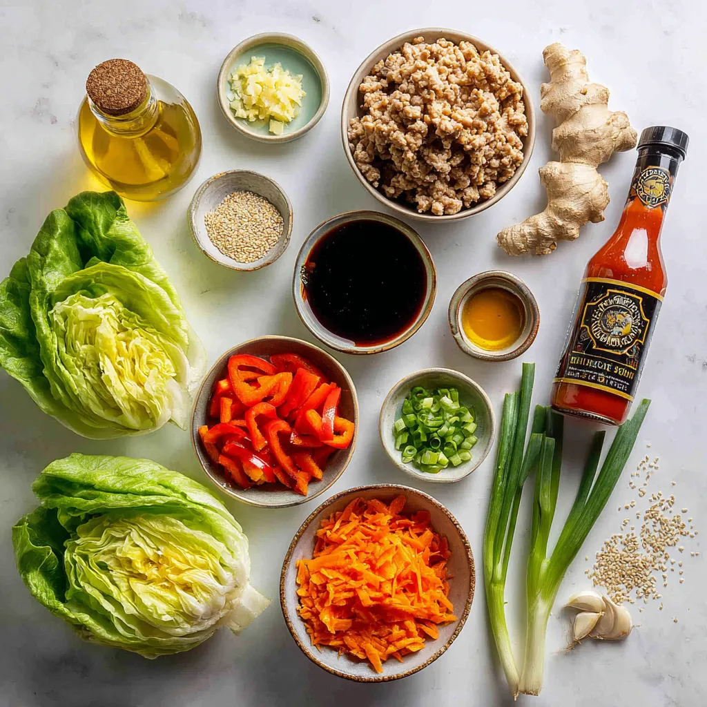 Ground chicken is a lean protein that builds muscles. Garlic and ginger add flavor and boost your immune system. Honey provides natural sweetness and has antioxidants. Bell peppers are high in vitamin C and add crunch. Carrots offer beta-carotene, good for your eyes. Lettuce is low in calories and adds fiber to your diet. Sesame seeds contain healthy fats and support heart health.