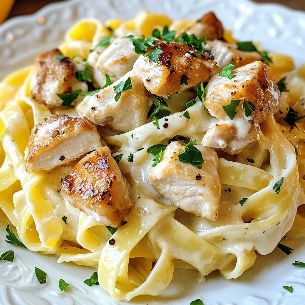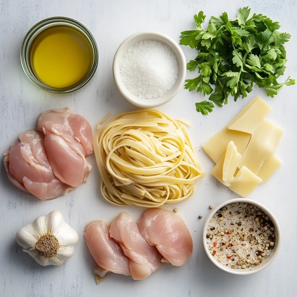 When making Instant Pot Chicken Alfredo, simple ingredients shine. You start with chicken breasts. Cut them into bite-sized pieces. This helps them cook evenly and quickly. Next, you need fettuccine pasta. It pairs well with the creamy sauce. Heavy cream brings richness to the dish.