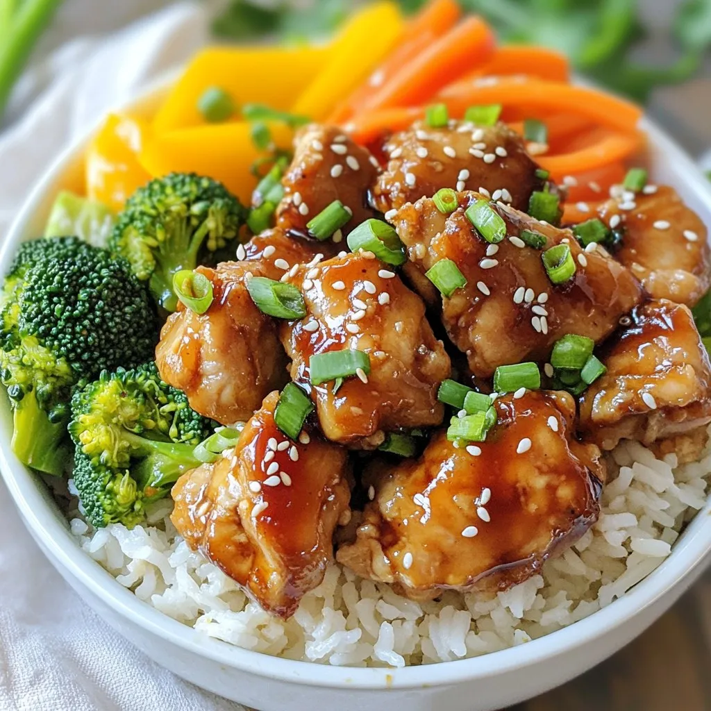- 1 lb (450g) boneless, skinless chicken thighs, cut into bite-sized pieces - 1 cup jasmine rice, rinsed - 1 ¼ cups chicken broth - 1 cup broccoli florets - ½ cup carrots, sliced thin - ½ cup bell pepper, sliced The main ingredients are simple. You start with chicken thighs. They are juicy and tender. Next is jasmine rice, which adds a nice texture. The chicken broth gives flavor and moisture. Broccoli, carrots, and bell peppers bring color and crunch. - ¼ cup soy sauce - ¼ cup honey - 2 tablespoons rice vinegar - 1 tablespoon sesame oil - 2 cloves garlic, minced - 1 teaspoon ginger, freshly grated The sauce makes this dish shine. Soy sauce gives it a salty kick. Honey adds sweetness, balancing the salt. Rice vinegar adds tang and brightness. Sesame oil brings a nutty flavor, while garlic and ginger add depth. This mix creates a well-rounded taste. - 2 green onions, chopped (for garnish) - Sesame seeds (for garnish) Garnishes are key to finishing the dish. Green onions add freshness and a bit of crunch. Sesame seeds bring a nice nutty flavor and a lovely look. These simple touches make your meal not just tasty but also beautiful. {{ingredient_image_1}} - First, gather your marinade ingredients. You need soy sauce, honey, rice vinegar, sesame oil, garlic, and ginger. - Cut your chicken thighs into bite-sized pieces. In a large bowl, mix the chicken with the marinade. Make sure all the pieces are coated well. Let it marinate for at least 15 minutes. This step adds great flavor. - Set your Instant Pot to sauté mode. Once hot, add the marinated chicken. Reserve the marinade for later. - Cook the chicken for about 3-4 minutes. Stir until it turns lightly brown. This gives the chicken a nice texture. - Now, add the rinsed jasmine rice. Pour in the chicken broth and gently mix everything together. The rice will soak up all the flavors. - Next, layer the broccoli florets, sliced carrots, and bell peppers on top of the rice. Do not stir this layer! This helps keep the rice from burning. - Close the lid of the Instant Pot and set it to high pressure for 10 minutes. Make sure the valve is in the sealing position. - Once done, let it sit for 5 minutes for a natural pressure release. Then, quick release any remaining pressure. This step is key to keeping your rice fluffy. - Open the lid and fluff the rice and chicken gently with a fork. Drizzle the reserved marinade over everything and mix well. - Finally, serve your dish in bowls. Top with chopped green onions and a sprinkle of sesame seeds for a beautiful finish. Enjoy your meal! To prevent burning the rice, always layer the vegetables on top of the rice. Do not stir them in. This helps keep the rice moist. Also, make sure to rinse the jasmine rice well before cooking. This washes off excess starch, which can cause sticking or burning. Natural pressure release is very important. After the cooking time ends, let the Instant Pot sit for five minutes. This helps the dish cook evenly and keeps the rice fluffy. Quick releasing the pressure too soon can lead to mushy rice. Adjusting the soy sauce and honey can change the taste. If you like it sweeter, add more honey. For a saltier flavor, use more soy sauce. You can also mix in other sauces, like teriyaki or even chili sauce, for a kick. Adding different vegetables can also enhance the dish. Try snap peas, zucchini, or even mushrooms. Each vegetable brings its unique taste and texture. Feel free to get creative with what you have on hand! Pro Tips Marinate for Flavor: Allowing the chicken to marinate for at least 15 minutes enhances the flavor, but for a deeper taste, marinate it for a few hours in the refrigerator. Use Fresh Ingredients: Fresh garlic and ginger will give your Teriyaki chicken a more vibrant flavor compared to pre-minced or ground versions. Layering Vegetables: Placing vegetables on top of the rice prevents them from becoming mushy and helps them retain their color and texture. Adjusting Sweetness: If you prefer a sweeter Teriyaki sauce, feel free to increase the amount of honey or add a dash of brown sugar to the marinade. {{image_2}} You can switch up the main protein in this dish. Using chicken breasts is a great choice. They are lean and cook well in the Instant Pot. Just cut them into bite-sized pieces like the thighs. If you want a plant-based option, try substituting with tofu. Firm tofu works best. Cut it into cubes and press it to remove extra water. Marinate it just like the chicken. This will let the tofu soak up all the tasty flavors. The type of rice you use can change the dish. Jasmine rice is fragrant and soft. It's perfect for soaking up the teriyaki sauce. But you can also use brown rice. It adds a nutty taste and more fiber. Just remember, brown rice takes longer to cook. You will need to adjust the time in the Instant Pot. Quinoa is another great substitute. It cooks quickly and is packed with protein. Rinse it well before adding it to the pot. This helps remove any bitterness. Each rice option brings its own flavor and texture. Experiment to find your favorite! To store leftovers, let the chicken and rice cool first. Place them in a container with a tight lid. I suggest using glass containers or BPA-free plastic ones. The dish will stay fresh for up to four days in the fridge. If you want to freeze, allow the dish to cool completely. Use freezer-safe bags or containers to store it. Squeeze out as much air as you can from the bags. This helps prevent freezer burn. It can last for up to three months in the freezer. When ready to eat, thaw it overnight in the fridge. Reheat in the microwave or on the stove. Add a splash of chicken broth for moisture. Stir well to make sure it heats evenly. This way, you can enjoy your tasty teriyaki chicken rice anytime! Yes, you can use frozen chicken for this recipe. Just remember to add extra time. If the chicken is still frozen, cook it for 5 to 10 minutes longer. Make sure to check that the chicken is fully cooked before servi