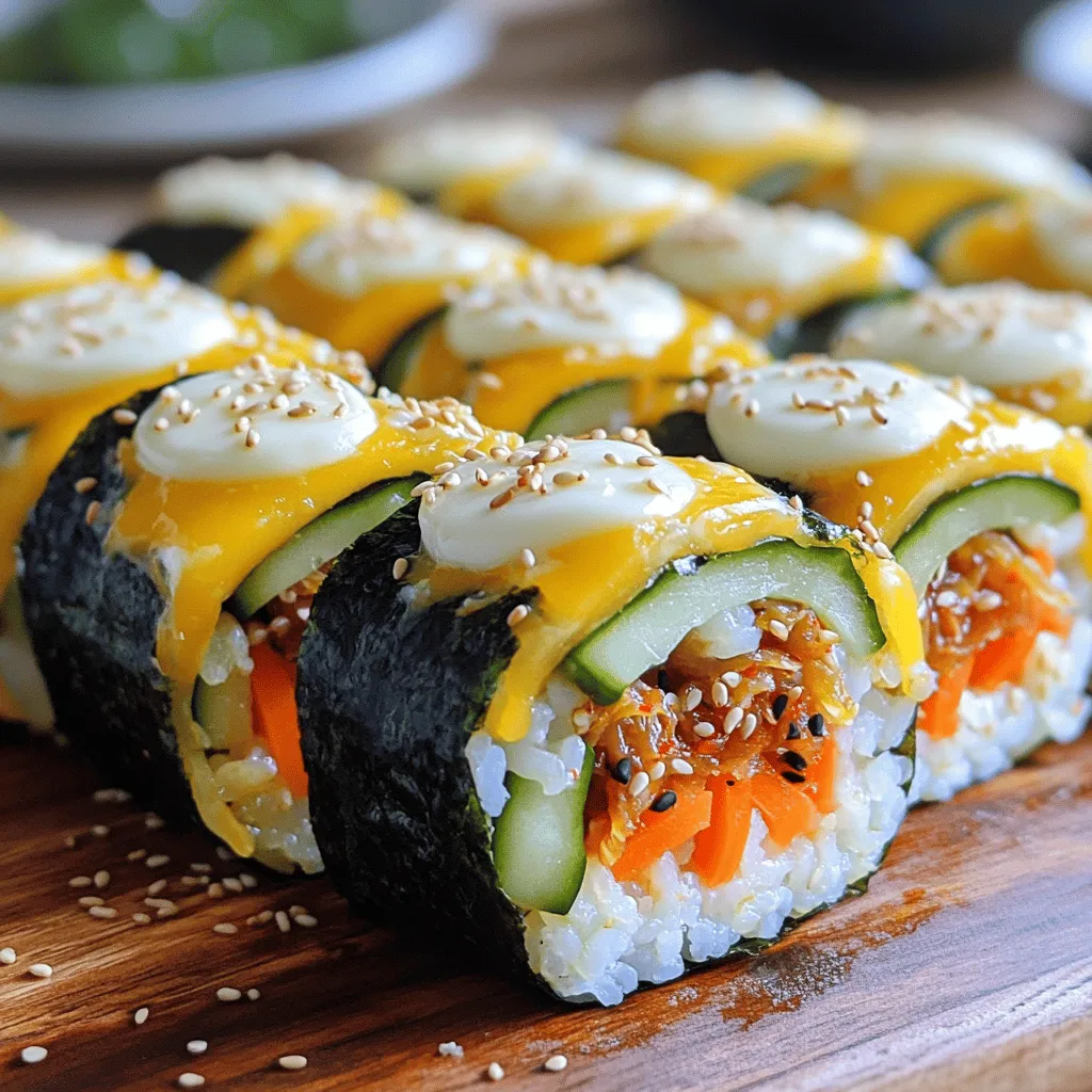 If you want to try different flavors, consider using alternative cheeses. Cream cheese or even a vegan cheese can work well. They add creaminess that pairs nicely with the kimchi. You can also explore different types of nori. Toasted nori gives a crunchier texture. Seaweed snacks can lend a fun twist if you want a lighter option.