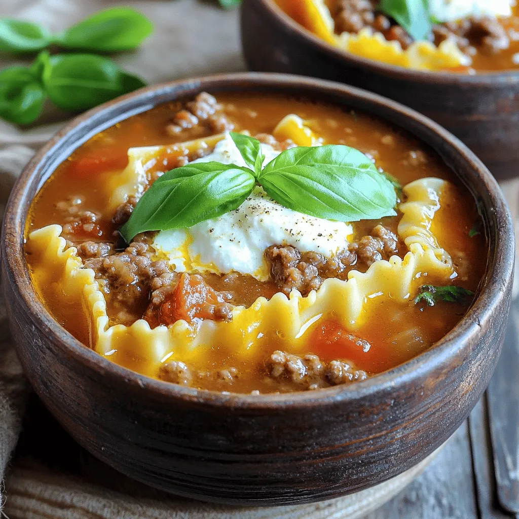 You can easily make Lasagna Soup vegetarian. Start by using plant-based meat alternatives. These options taste great and give you the same texture. Try using lentils or mushrooms for added depth. Next, incorporate more vegetables. Think spinach, zucchini, or bell peppers. These veggies bring color and nutrients to your dish.