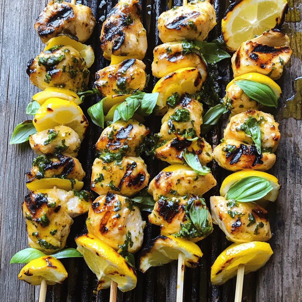 ![- 1 lb chicken breast, cut into cubes - 1/4 cup fresh lemon juice - Zest of 1 lemon - 1/4 cup olive oil - 2 cloves garlic, minced - 1/4 cup fresh basil, chopped - 1 teaspoon honey - Salt and pepper to taste - Wooden or metal skewers (if using wooden skewers, soak them in water for 30 minutes) For the Lemon Basil Chicken Skewers, gathering the right ingredients is key. Start with 1 lb of chicken breast, cut into bite-sized cubes. This keeps the cooking even and quick. You need 1/4 cup of fresh lemon juice and the zest of 1 lemon for a bright flavor. The 1/4 cup of olive oil adds richness and helps the marinade stick. Next, include 2 cloves of minced garlic and 1/4 cup of chopped fresh basil. These two ingredients will give the skewers a fresh, aromatic taste. Add 1 teaspoon of honey for a hint of sweetness, and salt and pepper to taste for seasoning. Don't forget about the skewers! Use either wooden or metal ones. If you choose wooden skewers, soak them in water for 30 minutes to prevent burning on the grill. This simple step keeps your Lemon Basil Chicken Skewers juicy and tasty. You can find the full recipe in the preceding sections for more details. To start, grab a bowl and whisk together the following ingredients: - 1/4 cup fresh lemon juice - Zest of 1 lemon - 1/4 cup olive oil - 2 cloves garlic, minced - 1/4 cup fresh basil, chopped - 1 teaspoon honey - Salt and pepper to taste Whisk these until they blend well. This mix creates a bright, zesty flavor that makes the chicken shine. Marination is important! Let it sit for at least 30 minutes. If you have time, two hours gives even better flavor. Next, it’s time to thread the chicken onto skewers. Take your chicken breast, cut into bite-sized cubes, and coat them in the marinade. After marinating, simply slide the chicken pieces onto the skewers. Make sure to leave a small gap between each piece. This helps the chicken cook evenly and get those nice grill marks. Now, preheat your grill or grill pan to medium-high heat. This step is key for getting a good sear on the chicken. Once heated, place the skewers on the grill. Cook for about 10-12 minutes. Remember to turn them occasionally. The chicken should reach an internal temperature of 165°F (75°C). When done, take the skewers off the heat and let them rest for a few minutes before serving. Enjoy the juicy, vibrant flavors of your Lemon Basil Chicken Skewers! For the full recipe, check out the complete guide! To make your Lemon Basil Chicken Skewers shine, marination is key. I recommend marinating the chicken for at least 30 minutes. For even more flavor, let it sit for up to 2 hours. The longer the chicken soaks, the better the taste. You can also use leftover marinade after cooking. Just brush it on the skewers before serving. This adds a nice touch without wasting any flavors. Check the doneness of your chicken using a meat thermometer. The internal temperature should reach 165°F (75°C). If you use a charcoal grill, you might need to adjust the heat. For gas grills, aim for medium-high heat. Make sure to turn the skewers often for even cooking. This will help you get those perfect grill marks. Pair your skewers with fresh sides. A light salad or grilled veggies works great. You can also serve them with rice or flatbreads. For a beautiful presentation, add some extra basil leaves or lemon wedges. These simple garnishes make your dish look and taste even better. For the complete recipe, check the [Full Recipe]. {{image_2}} You can change the marinade if you want to mix things up. If you don’t have lemon, try lime juice for a different zing. Fresh herbs like parsley or cilantro can also work well. If you feel adventurous, add spices like smoked paprika or cumin. These spices can add warmth and depth to your dish. You can also switch oils. Instead of olive oil, try avocado oil or sesame oil for a unique flavor twist. Chicken is great, but you can use other proteins too. Shrimp works wonderfully with this marinade. Just remember, shrimp cooks faster, so grill it for about 6-8 minutes. Beef can be another option. If you choose beef, cut it into bite-sized pieces like the chicken. It may need a bit longer, around 12-15 minutes. Tofu is a fantastic plant-based choice. Use firm or extra-firm tofu and cut it into cubes. It will take about 10-12 minutes to grill. For a plant-based skewer, you can use a mix of colorful veggies. Bell peppers, zucchini, and cherry tomatoes are great choices. You can also add mushrooms for that meaty texture. Just toss your veggies in the same marinade as the chicken. Skewer them and grill for about 10-12 minutes until they are tender. These veggie skewers are not only tasty but also add beautiful colors to your plate. For the best results, try to keep the pieces similar in size for even cooking. To keep your Lemon Basil Chicken Skewers fresh, place them in an airtight container. This will prevent moisture loss and keep the flavors intact. You can refrigerate the skewers for up to three days. If you notice any strong odors or changes in texture, it’s best to discard them. To freeze cooked chicken skewers, wrap them tightly in plastic wrap or aluminum foil. Place them in a freezer-safe bag. They can last for up to three months in the freezer. When you’re ready to enjoy them, thaw the skewers in the fridge overnight. Heat them in the oven at 350°F (175°C) for about 10-15 minutes, or until warmed through. Food safety is key when handling chicken. Always wash your hands before and after touching raw chicken. Use separate cutting boards for raw meat and other foods to avoid cross-contamination. Never place cooked skewers back on the same plate that held raw chicken. These simple steps will help keep your meals safe and delicious. You should marinate the chicken for at least 30 minutes. This will give the flavors time to soak in. If you want a stronger taste, marinate for up to 2 hours. Avoid marinating for too long, as the acid in lemon juice can change