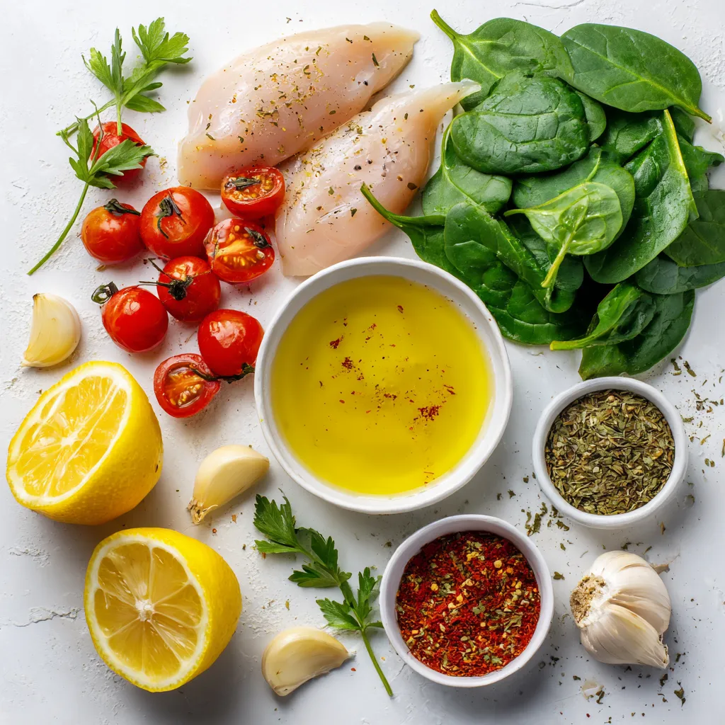 For a complete meal, I use supporting ingredients. Salt and pepper are key for flavor. Chicken broth adds moisture and richness. Cherry tomatoes burst with sweetness. Baby spinach gives a pop of color and nutrients. Don’t forget fresh parsley! It adds a lovely finish.