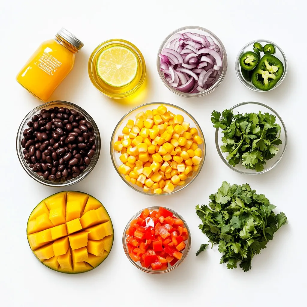 When making this salad, the ingredients matter. Each adds flavor and texture. The ripe mango is key. It brings sweetness and a bright color. Black beans add protein and fiber. They make the salad filling and hearty. The red bell pepper gives a crisp crunch. It also adds a nice pop of color.