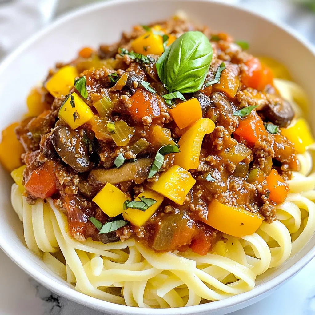 A hearty and flavorful meatless bolognese sauce packed with vegetables, perfect for pasta lovers.