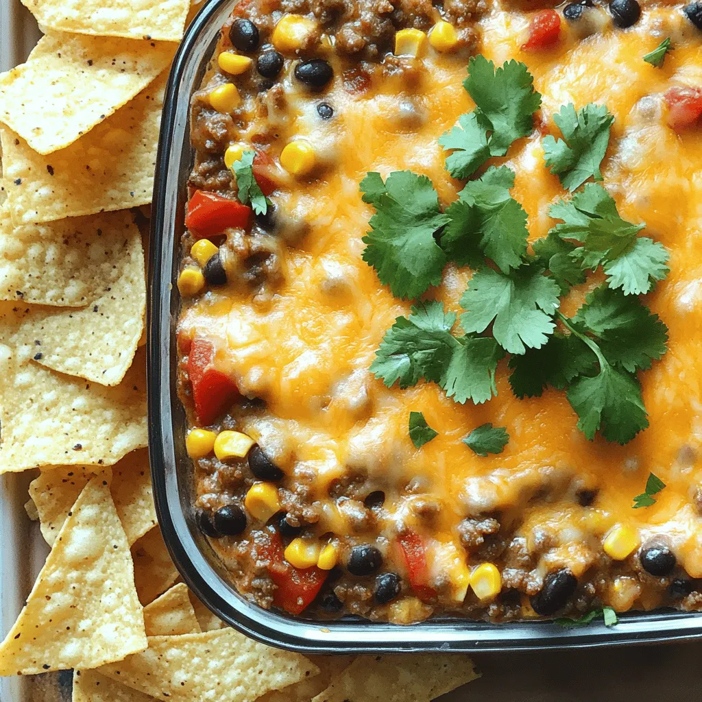 ![- 1 lb ground beef - 1 lb ground sausage - 1 can (10 oz) diced tomatoes with green chilies, drained - 1 can (15 oz) black beans, rinsed and drained - 1 can (15 oz) corn, drained - 1 package (8 oz) cream cheese, softened - 2 cups shredded cheddar cheese - 1 cup sour cream - 1 tablespoon taco seasoning - 1 tablespoon garlic powder - 1 tablespoon onion powder - Fresh cilantro, chopped (for garnish) - Tortilla chips or veggie sticks (for serving) When I make Meaty Texas Trash Dip, I love the mix of bold flavors. You start with ground beef and sausage, which give a hearty base. Then, the diced tomatoes with green chilies add some zest. Black beans and corn bring texture and sweetness. Together, these ingredients create a rich, savory dip that everyone loves. The dairy ingredients make this dip creamy and lush. Cream cheese is key here; it adds smoothness. Shredded cheddar cheese on top melts beautifully, making it ooey-gooey. Sour cream helps to balance the flavors, giving a cool finish. Finally, fresh cilantro adds a pop of color and freshness. Serve this dip with crispy tortilla chips or crunchy veggie sticks. It’s perfect for parties, game day, or a cozy night in. Try this recipe for a dish that packs a punch! For the full recipe, click here: [Full Recipe]. - Cook ground beef and sausage in a large skillet. - Drain excess grease if necessary. In a large skillet, place your ground beef and sausage. Use medium heat to cook the meat until it's all brown. This gives the dip a great base flavor. You may need to drain some grease. This helps keep the dip from being too oily. - Add diced tomatoes, black beans, and corn to the meat. - Incorporate cream cheese until melted. Once the meat is ready, it’s time to mix in some fun flavors. Add the drained diced tomatoes, black beans, and corn to the skillet. Stir them well into the meat. Next, add the cream cheese. Stir until it melts and blends in with the other ingredients. This creates a rich and creamy base. - Add spices and cheddar cheese, mixing until creamy. - Transfer to an oven-safe dish and bake at 350°F for 20-25 minutes. - Garnish with cilantro before serving. Now for the magic! Sprinkle in the taco seasoning, garlic powder, and onion powder. Mix everything until it’s creamy and smooth. Gradually fold in the shredded cheddar cheese. Save a bit for later to top the dip. Next, pour the mixture into an oven-safe dish. Add the reserved cheddar cheese on top. Bake it in a preheated oven at 350°F for 20 to 25 minutes. You want it bubbly and golden brown. Once it’s done, take it out and let it cool slightly. Finally, garnish with fresh chopped cilantro. Serve with tortilla chips or veggie sticks for a perfect dip experience. For the complete recipe, check out the [Full Recipe]. To get the best texture for your Meaty Texas Trash Dip, start with softened cream cheese. This makes mixing easy and smooth. If the cream cheese is cold, it will clump. You want a creamy dip, not a chunky one. When cooking, avoid overcooking the dip. Too much heat can dry it out. Keep it creamy and luscious. For a flavor boost, think about adding extra spices. A dash of hot sauce can really wake up the taste. You might want to try different cheese combinations too. Mixing cheddar with Monterey Jack adds depth and richness. Don’t be afraid to experiment! When serving, pair this dip with sliced jalapeños for a spicy kick. You can also add a side of salsa for freshness. If you're looking for a healthier option, veggie sticks work great. Carrots, cucumbers, or bell peppers are tasty choices for dipping. This way, everyone can enjoy the dip in their own style. {{image_2}} - You can use ground turkey or chicken for a leaner option. This swap cuts fat but keeps flavor. - For extra flavor, add diced bacon. It adds a nice crunch and smoky taste. - If you want a veggie dip, replace the meat with a black bean or lentil mix. This keeps the dip hearty and satisfying. - To balance the flavors, increase the cheese and other ingredients. This adds creaminess and richness to your veggie dip. - If you like heat, add fresh jalapeños or hot salsa. This gives your dip a bold kick. - Another option is to use pepper jack cheese. It melts well and adds a spicy twist to the dish. Feel free to explore these variations to make the Meaty Texas Trash Dip your own. You can enjoy the full recipe and try out these ideas. Store leftovers in an airtight container for up to 3 days. This keeps the dip fresh and tasty. When you want to enjoy it again, just reheat in the oven or microwave before serving. You can freeze this dip in a sealed container for up to 2 months. This is great for meal prep or if you want a snack ready to go. When you’re ready to eat it, thaw it in the refrigerator before reheating. To keep the cheese creamy, reheat slowly on low heat. This helps avoid burning. If the dip thickens too much, add a splash of sour cream. This brings back its smooth texture and taste. Yes, prepare and bake the dip ahead, then reheat before serving. This way, you save time and enjoy the bold flavor without stress. Just let it cool, cover it, and store it in the fridge until you are ready to eat. Serve warm with tortilla chips or veggie sticks for dipping. The crispy chips contrast nicely with the creamy dip. You can also add sliced jalapeños for an extra kick. Absolutely! Feel free to substitute with your favorite cheese for unique flavors. Cheddar works well, but you might try pepper jack for heat or mozzarella for a milder taste. Mixing cheeses can elevate your dip's flavor. This blog post covered the key ingredients and simple steps for making Meaty Texas Trash Dip. You learned how to blend meats, cheese, and spices into a creamy treat. Remember to explore variations and tips for your best batch. Don't hesitate to get creative with flavors or serve it your way. This dip is perfect for gatherings, and leftovers are easy to store. Dive in and enjoy each delicious bite!](https://lisadishes.co