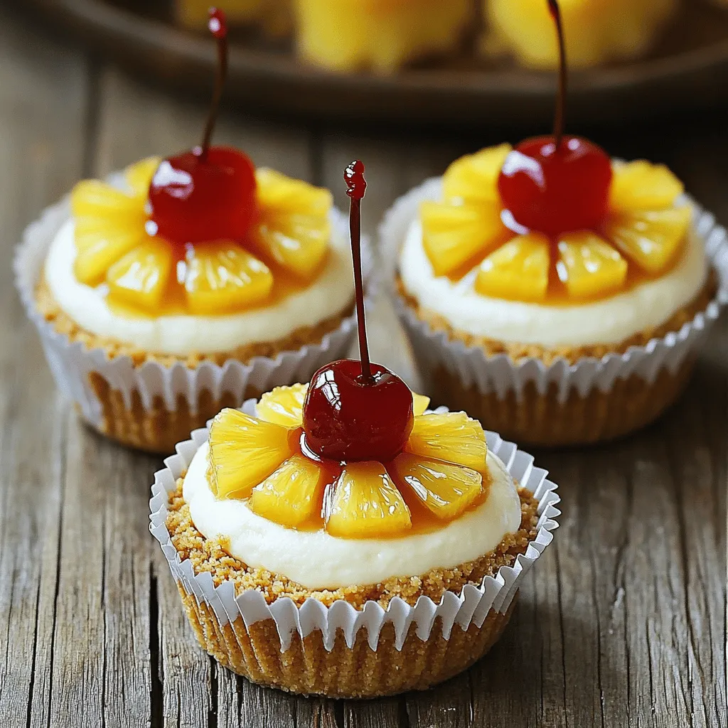 For a fun touch, maraschino cherries make a great topping. They add a pop of color and flavor. You can also sprinkle some extra crushed pineapple on top. This makes your mini cheesecakes even more tropical and delicious.Happy baking!
