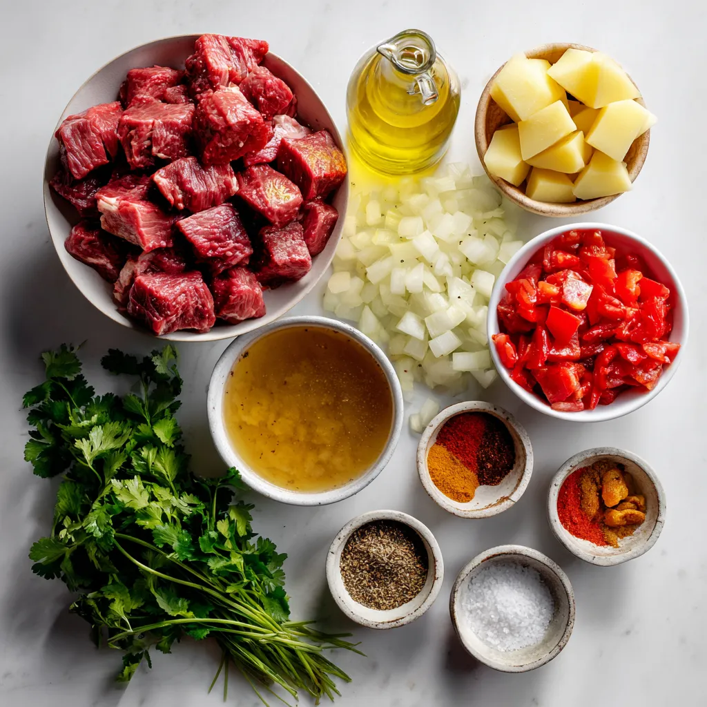 A flavorful and aromatic Moroccan dish featuring tender beef, potatoes, and dried apricots, slow-cooked to perfection.