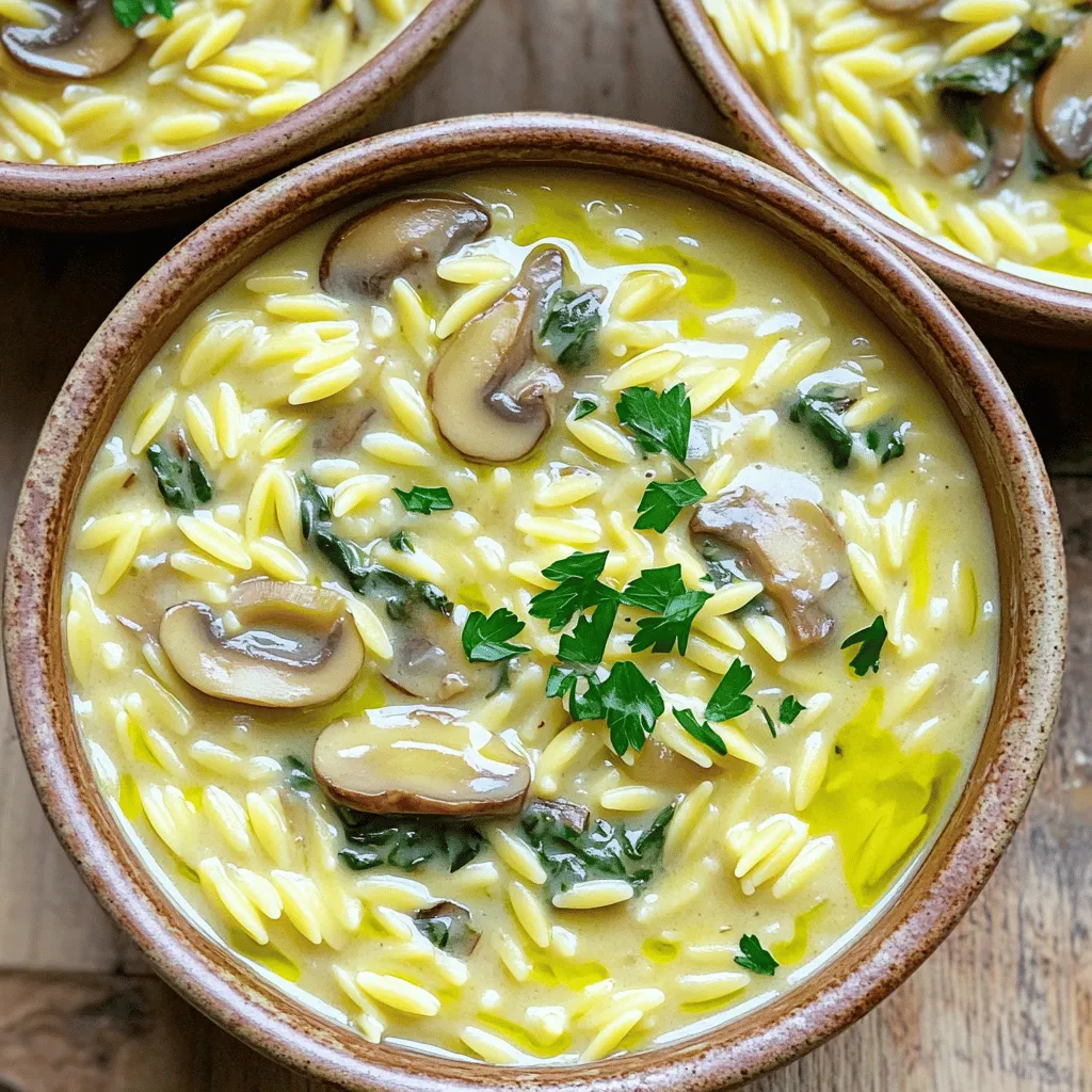 Prep your ingredients before you start. Chop the onions, garlic, and mushrooms ahead of time. This way, you spend less time at the stove. Use pre-sliced mushrooms to save even more time. If you want a quick meal, consider using a microwave to wilt the spinach. Just pop it in for a minute or two while your orzo cooks. This keeps everything moving along smoothly.
