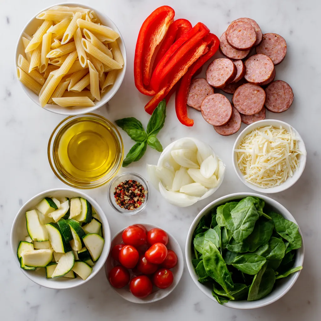 Each ingredient plays a role in building flavor. The penne pasta soaks up the broth and spices, giving you a hearty bite. The kielbasa brings a rich, savory taste. Fresh veggies add color, crunch, and nutrients.