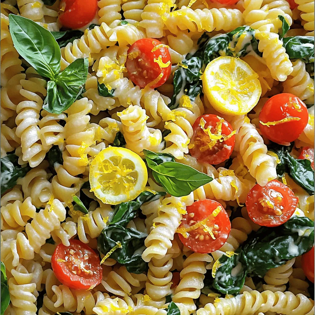 Using the right ingredients is key. I love using fusilli or penne pasta because they hold the sauce well. Olive oil adds richness, while garlic gives a nice kick. Vegetable broth adds flavor without being heavy. Ricotta cheese makes the dish creamy, while lemon zest and juice brighten everything up. Cherry tomatoes add sweetness and color, and spinach brings freshness.