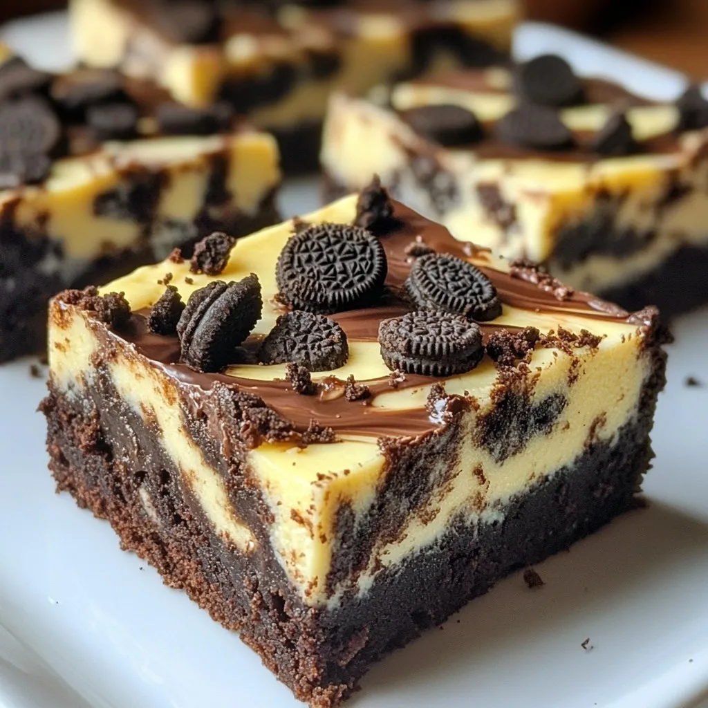 Delicious brownies layered with a creamy cheesecake and Oreo cookie topping.