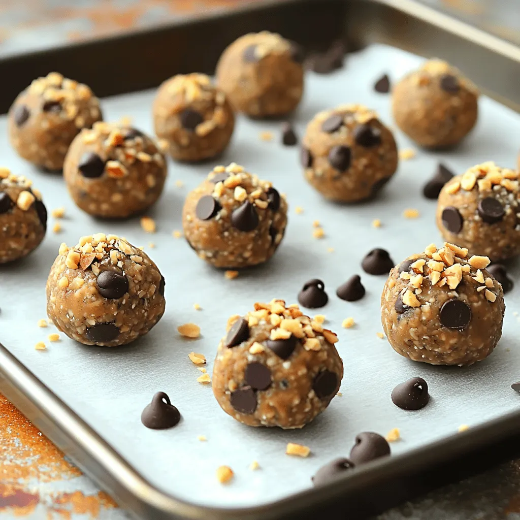 To make your Peanut Butter Chocolate Chip Energy Balls, gather these ingredients: - 1 cup rolled oats - 1/2 cup creamy peanut butter - 1/4 cup honey or maple syrup - 1/2 cup chocolate chips (dark or milk, as preferred) - 1/4 cup ground flaxseed - 1/2 teaspoon vanilla extract - A pinch of salt Each ingredient plays a special role in this recipe. - Rolled oats give the balls a chewy texture. They also add fiber to keep you full. - Creamy peanut butter binds the mixture together and adds healthy fats. - Honey or maple syrup offers sweetness and helps with texture. - Chocolate chips bring rich flavor and a treat-like quality. - Ground flaxseed adds nutrients and a subtle nutty taste. - Vanilla extract enhances the overall flavor. - Salt balances sweetness and brings out the other flavors. You can customize your energy balls with these add-ins: - Chopped nuts for added crunch. - Dried fruit like raisins or cranberries for more sweetness. - Coconut flakes for a tropical twist. - Protein powder to boost protein content. Feel free to swap peanut butter with almond butter or sunflower seed butter for a nut-free option. You can also use agave syrup instead of honey. First, gather all your ingredients. You need rolled oats, creamy peanut butter, honey, chocolate chips, ground flaxseed, vanilla extract, and a pinch of salt. This recipe is quick and easy, taking only ten minutes to prep. In a large bowl, mix rolled oats, ground flaxseed, and salt. Stir them well. Next, add the creamy peanut butter and honey. Use a spatula to blend until the mixture comes together. Then, stir in the vanilla extract. Fold in the chocolate chips gently. This step ensures they are spread evenly. Now, use your hands to form small balls, roughly 1 inch wide. Place them on a baking sheet lined with parchment paper. This helps prevent sticking. Once formed, refrigerate the energy balls for at least 30 minutes. This chill time helps them set properly. After 30 minutes, your energy balls are ready to enjoy! You can serve them as a snack or a quick breakfast. For a fun twist, roll them in crushed nuts or coconut flakes before refrigerating. Pair these energy balls with fresh fruit for a tasty and nutritious treat. For the full recipe, check out the details above. To mix your energy balls well, start with dry ingredients. Combine rolled oats, ground flaxseed, and salt in a bowl. Stir until mixed evenly. Then, add the creamy peanut butter and honey. Use a spatula for a good mix. This helps to blend the flavors. Make sure everything is combined before adding chocolate chips. If your mixture feels too sticky, add more oats. They help absorb moisture. You can also chill the mixture for a short time. This makes it easier to handle. If you find it still sticks, lightly oil your hands. This will help you roll the balls without mess. Serve your energy balls cold for a refreshing treat. Pair them with fresh fruit like apples or bananas. You can also enjoy them with yogurt for a tasty snack. For a fun twist, roll the balls in crushed nuts or coconut flakes. This adds flavor and makes them look great! {{image_2}} You can easily change the flavor of your energy balls. Try adding spices like cinnamon or nutmeg. These spices add warmth and depth. You can also mix in some cocoa powder for a richer chocolate taste. If you love fruit, consider adding dried cranberries or raisins. They provide a sweet and chewy contrast to the chocolate. Making these energy balls vegan is simple. Just swap honey for maple syrup. This keeps them sweet and plant-based. For a gluten-free option, use certified gluten-free oats. This way, everyone can enjoy them without worry. You can also skip the chocolate chips or use dairy-free versions to suit your needs. Feel free to experiment with different nut butters. Almond butter or cashew butter work well, too. They each bring their own unique flavor. For sweeteners, you can use agave nectar or brown rice syrup instead of honey. This flexibility makes these energy balls fun to personalize. Add your favorite nuts or seeds for extra crunch and nutrition. You can find the full recipe for these energy balls [here](#). To keep your Peanut Butter Chocolate Chip Energy Balls fresh, store them in an airtight container. This helps lock in moisture and flavor. Place a piece of parchment paper between layers if you stack them. This prevents them from sticking together. Always refrigerate these energy balls right after making them. The cool temperature helps them maintain their shape and texture. You can freeze these energy balls for a longer shelf life. First, place them on a baking sheet. Make sure they are not touching. Freeze them for about an hour. Once they are solid, transfer them to a freezer-safe bag or container. Be sure to label it with the date. They will keep well in the freezer for up to three months. When you're ready to eat, just thaw them in the fridge overnight. When stored in the fridge, these energy balls last about one week. Keep an eye on them for any signs of spoilage. If they start to smell off or look dry, it’s best to toss them. For frozen energy balls, quality remains excellent for about three months. Over time, the taste may change slightly, but they will still be safe to eat. Enjoy your energy balls while they are fresh for the best taste! Peanut Butter Chocolate Chip Energy Balls stay fresh for about one week. Store them in an airtight container in your fridge. This keeps them firm and tasty. You can also freeze them for longer storage. They will last up to three months in the freezer. Just let them thaw before enjoying. Yes, you can make these without honey or maple syrup. Use mashed bananas or agave syrup as sweet alternatives. These options provide moisture and sweetness. Adjust the amount based on your taste. You may need to change the texture slightly, but they will still be delicious. Yes, these energy balls are healthy! They pack protein from peanut butter and fiber from oats. The chocolate chip