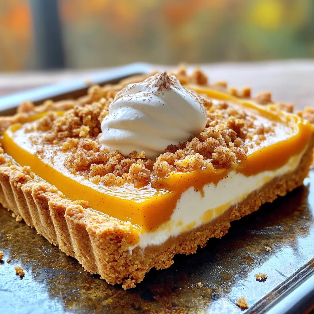 - 1 pre-made graham cracker or shortcrust pastry shell - 1 cup cream cheese, softened - 1 cup pumpkin puree (canned or freshly made) - 1/2 cup granulated sugar - 1/4 cup brown sugar - 2 large eggs - 1 teaspoon vanilla extract - 1 tablespoon pumpkin pie spice - 1/2 teaspoon salt - 1/2 cup all-purpose flour - 1/4 cup oats - 1/4 cup brown sugar - 1/4 cup unsalted butter, melted - 1/2 teaspoon cinnamon - Whipped cream - Pumpkin pie spice for sprinkling Gathering the right ingredients is key to making this pumpkin cream cheese tart shine. You start with a pre-made pastry shell. This saves time and keeps things simple. Next, the cream cheese needs to be softened. Soft cream cheese blends easily with other ingredients. Pumpkin puree adds that rich flavor. You can use canned puree or make your own. After that, you will mix in granulated and brown sugar. The sugars sweeten the tart and add depth. Two large eggs act as a binder. They help hold the filling together. Vanilla extract adds warmth, while pumpkin pie spice brings that classic fall flavor. Finally, a pinch of salt balances the sweetness and enhances taste. For the streusel topping, you’ll need flour, oats, brown sugar, melted butter, and cinnamon. This mixture creates a crunchy topping that contrasts nicely with the creamy filling. Optional garnishes like whipped cream and a sprinkle of pumpkin pie spice make the tart look beautiful and festive. These simple touches elevate each slice into a treat. With these ingredients, you are ready to create a delicious pumpkin cream cheese tart that everyone will love. - Preheat the oven to 350°F (175°C). This helps the tart bake evenly. - Prepare the pastry shell by placing it in a tart pan. This makes it easy to fill. - Beat the softened cream cheese until smooth. This creates a nice base for your filling. - Incorporate pumpkin puree and sugars. Mix well to combine all the flavors. - Pour the pumpkin cream cheese mixture into the pastry shell. Spread it evenly for a nice look. - Prepare and sprinkle the streusel topping over the filling. This adds a crunchy layer. - Bake for 45-50 minutes until set. The filling should be firm and the top golden. - Allow the tart to cool for at least 30 minutes before slicing. This helps the filling set up better. For best results, refrigerate for about an hour before serving. To get the best texture, start with softened cream cheese. Cold cream cheese makes it hard to mix. Let it sit out for about 30 minutes before you use it. This way, it blends well with the other ingredients. Use an electric mixer to beat the cream cheese until it's smooth and creamy. Mix slowly at first to avoid splatter, then speed up as it combines. Adding spices can take your tart to the next level. Pumpkin pie spice is a great start, but don’t stop there. You can add a pinch of nutmeg or ginger for a warm kick. Check the sweetness, too. Taste the mixture before pouring it into the crust. If it needs more sweetness, add a bit more granulated sugar or brown sugar. Presentation makes your tart look fancy. Serve each slice with a dollop of whipped cream on top. A sprinkle of pumpkin pie spice adds a nice touch. For drinks, pair it with a warm spiced cider or a cup of coffee. The flavors complement each other well. Enjoy your delicious creation! {{image_2}} If you want a gluten-free crust, use almond flour or gluten-free biscuits. Many stores sell gluten-free options that taste great. You can also make your own with ground nuts and butter. For a dairy-free version, swap the cream cheese with a plant-based cream cheese. Look for brands that use cashews or coconut. These options work well and keep the tart creamy. Want to switch it up? Try flavored tarts like chocolate or caramel. Adding cocoa powder to the cream cheese mix gives a rich twist. You can also fold in toasted nuts, like pecans or walnuts, for a crunchy texture. Consider adding a hint of citrus. A little orange or lemon zest brightens the flavor. Just a teaspoon can change the whole taste of the tart. Spices can change with the seasons. Add nutmeg or ginger for a warm winter feel. For spring, try a fresh herb like mint for a cool taste. Deciding between fresh or canned pumpkin? Fresh pumpkin gives a pure flavor. Canned pumpkin is easy and still tasty. Both work well, so use what you have. To store the pumpkin cream cheese tart in the fridge, cover it tightly with plastic wrap or aluminum foil. This keeps it fresh and prevents it from absorbing other smells. You should store it in the fridge for up to five days. If you want to save some tart for later, freezing is a great option. First, let the tart cool completely. Then, wrap it well in plastic wrap and aluminum foil to stop freezer burn. You can freeze the tart for up to three months. When you're ready to enjoy it, thaw it in the fridge overnight. To check if your tart is still good, look for any off smells, mold, or a change in texture. If it smells sour or has a watery layer, it's best to toss it. To keep the flavor and texture nice, slice and store pieces separately. This way, you can enjoy it fresh each time! Yes, you can make this tart ahead of time. It stays fresh for days. I recommend baking it a day before you serve it. After baking, let it cool completely. Then, cover it with plastic wrap and place it in the fridge. This will help the flavors blend well. Just remember to let it sit at room temperature for a bit before slicing. If you need a substitute for cream cheese, there are a few options. You can use mascarpone cheese for a similar taste. Greek yogurt is another great option. It will make the tart a bit tangy but still creamy. Silken tofu can work too if you want a dairy-free choice. Just blend it until smooth. The tart can last about 4 to 5 days in the fridge. Make sure to store it in an airtight container. This keeps it fresh and safe to eat. If you notice any strange smells or changes in texture, it’s best to throw it away. Always trust your senses when it co