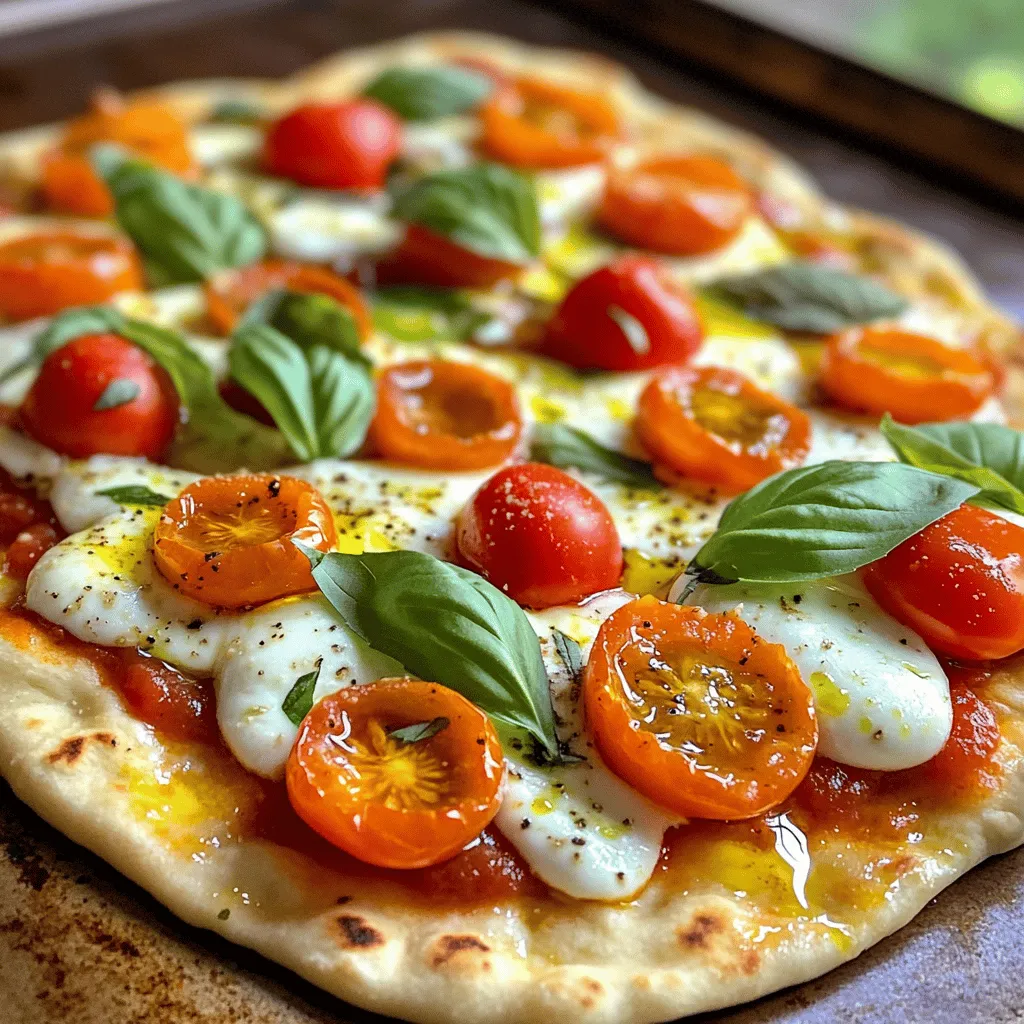 - 2 store-bought flatbreads or naan - 1 cup marinara sauce (homemade or high-quality store-bought) - 1 1/2 cups fresh mozzarella cheese, sliced - 1 cup cherry tomatoes, halved - Fresh basil leaves, for garnish - 1 tablespoon extra virgin olive oil - Salt and pepper to taste - 1 teaspoon dried oregano (optional) You can easily swap out the marinara sauce for pizza sauce if you prefer. If you want a richer taste, use burrata instead of mozzarella. If you need a dairy-free option, try a vegan cheese that melts well. - Baking sheet - Parchment paper - Oven thermometer (optional) Using a baking sheet keeps the flatbreads flat and even. Parchment paper helps prevent sticking. An oven thermometer can ensure your oven stays at the right temperature. This way, your flatbreads will cook evenly and taste great! To make your flatbreads crispy and tasty, start by preheating your oven to 450°F (232°C). This heat makes the cheese melt nicely and the edges crisp. While the oven heats, choose your flatbreads. I like using store-bought naan or thin pita bread. They work well and save time. Now, let’s spread the marinara sauce. Use about 1 cup for two flatbreads. Make sure to leave a small border around the edges. This keeps the sauce from spilling over during baking. Next, layer the fresh mozzarella cheese on top. You need about 1 ½ cups, sliced evenly. The more cheese, the creamier the flatbread! Then, scatter 1 cup of halved cherry tomatoes over the cheese. Season with salt, pepper, and 1 teaspoon of dried oregano if you want extra flavor. Finally, drizzle 1 tablespoon of extra virgin olive oil over the top. This adds richness to your dish. Now, it’s time to bake! Place your flatbreads on a baking sheet lined with parchment paper. Bake them for about 10-12 minutes. Keep an eye on them. You’ll know they are done when the cheese is melted and bubbly, and the edges are golden brown. When they are ready, take them out of the oven and let them cool for a minute. This helps the cheese set a bit. Before you slice them into wedges, add fresh basil leaves for a pop of color and flavor. For the full recipe, you can refer to the earlier section. Enjoy your Quick Margherita Flatbread! To keep your flatbread from getting soggy, use less sauce. Spread a thin layer of marinara sauce. This helps the bread stay crisp. Also, bake the flatbread on the bottom rack. This allows the heat to cook the bottom evenly. For the cheese, use fresh mozzarella. It melts very well. Slice it thin to help it melt faster. You can also tear it into smaller pieces. This gives a nice, gooey texture. To make your flatbread even better, try adding seasonings. A sprinkle of garlic powder boosts the flavor. You can also add crushed red pepper for some heat. For garnishes, fresh basil leaves add color and taste. You can also drizzle a bit of balsamic glaze on top. This gives a sweet and tangy touch. Get creative and mix in your favorite herbs too! {{image_2}} You can change up your Quick Margherita Flatbread with different toppings. Try using different cheeses, like goat cheese or provolone. They add unique flavors and textures. If you enjoy meat, add slices of pepperoni or prosciutto. For a veggie option, consider bell peppers or mushrooms. Both choices make your flatbread tasty and fun. If you need gluten-free options, look for gluten-free flatbreads or naan. Many stores offer good choices that taste great. For those who want a vegan option, there are many plant-based cheese choices. Brands like Daiya or Violife melt well and taste delicious. These swaps help everyone enjoy this meal without missing out. To keep your Quick Margherita Flatbread fresh, let it cool completely. Then, wrap each piece in plastic wrap. This keeps the bread from drying out. You can also place the flatbread in an airtight container. Make sure to separate layers with parchment paper to avoid sticking. For best results, store leftovers in the fridge. They will stay fresh for about 2 to 3 days. If you want to keep them longer, consider freezing. Wrap each piece tightly and place them in a freezer bag. Frozen flatbreads can last up to a month. When it’s time to reheat your flatbread, the oven works best. Preheat your oven to 350°F (175°C). Place the flatbread on a baking sheet. Heat for about 8 to 10 minutes, or until warm. This method keeps the bread crispy. You can also use a skillet on the stove. Heat the skillet over medium heat and add the flatbread. Cover it with a lid to trap heat. Heat for 3 to 5 minutes on each side. This way, you avoid losing the nice texture. If you want to enjoy it plain, you can microwave the flatbread. However, this method may make it chewy. So, for the best flavor and texture, stick with the oven or skillet. It takes about 22 minutes to make this flatbread. The prep time is just 10 minutes. You will need 12 minutes to bake it. This quick meal is great for busy days or last-minute dinners. Yes, you can make your own flatbread. Mix flour, water, salt, and yeast to form a dough. Roll it out thin and cook it in a hot skillet. Homemade flatbreads add a nice touch. They can also be fun to make with kids. You can serve many sides with this flatbread. A fresh salad with greens and vinaigrette works well. Garlic bread or roasted veggies also pair nicely. Serve it with a light soup for a full meal. You can get creative with your pairings! Making Quick Margherita Flatbread is easy and fun. You learned about the key ingredients, needed equipment, and step-by-step instructions. We covered tips to achieve the perfect texture and enhance flavors. You also explored variations and storage methods for leftovers. With simple swaps and additions, you can make this dish your own. I hope you feel ready to create your own delicious flatbread at home. Enjoy every bite!