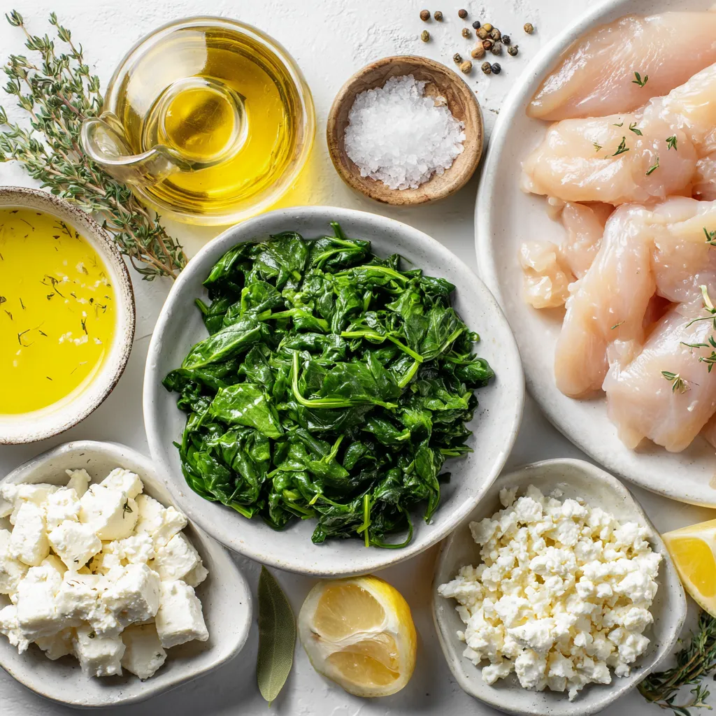 To make Rolled Chicken with Feta and Spinach, gather these ingredients: