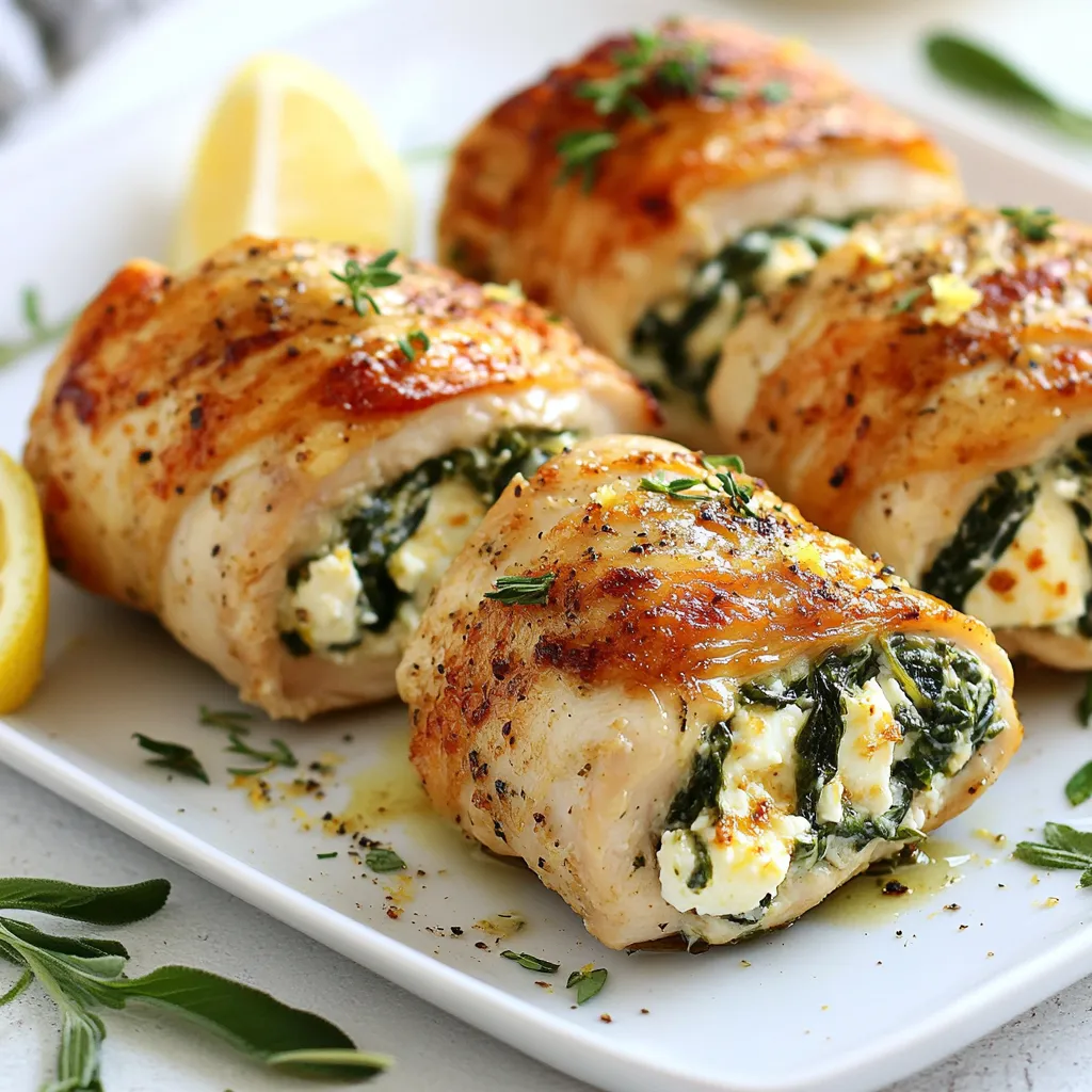 Serve the chicken rolls on a platter garnished with fresh herbs and lemon wedges for a pop of color. Optionally, drizzle with a balsamic reduction for added flavor and a visually appealing touch.