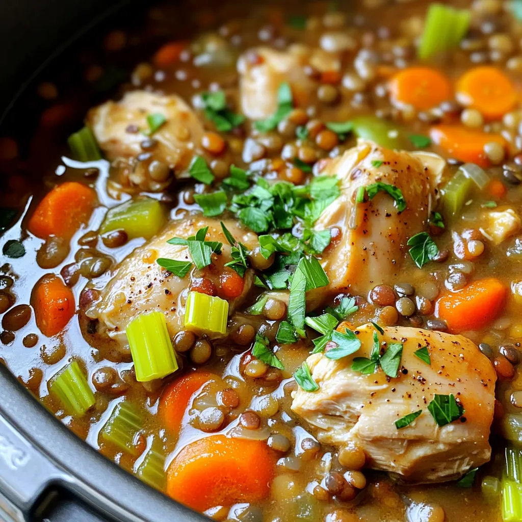 These ingredients come together to create a warm and hearty meal. The chicken thighs add rich flavor, while the lentils give it a nice texture.