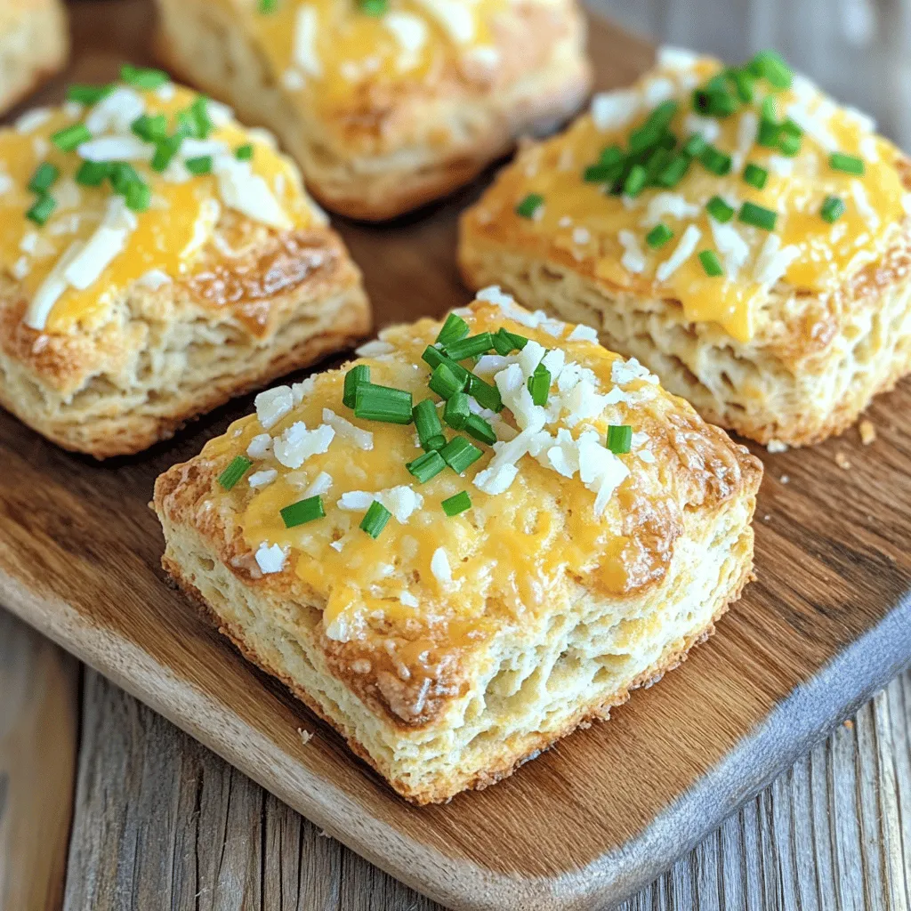![For your savory cheese scones, gather these key ingredients: - 2 cups all-purpose flour - 1 tablespoon baking powder - 1/2 teaspoon salt - 1/4 teaspoon black pepper - 1/4 teaspoon cayenne pepper (optional) - 1/2 cup cold unsalted butter, cubed - 1 cup shredded sharp cheddar cheese - 1/2 cup grated Parmesan cheese - 1/2 cup whole milk (or buttermilk) - 1 egg, beaten (for egg wash) - Fresh chives, finely chopped (for garnish) Using quality cheese is vital for flavor. Sharp cheddar brings a rich taste. Parmesan adds depth and a hint of nuttiness. Always choose fresh, high-quality cheese for the best results. You can enhance your scones with some fun add-ins. Consider these herbs and spices: - Fresh rosemary - Thyme - Garlic powder For cheese varieties, try: - Gruyère for a nutty twist - Feta for a tangy kick - Mozzarella for a gooey texture These options let you explore new flavors and keep your scones exciting. Enjoy experimenting! For the full recipe, check out the detailed instructions above. 1. Start by preheating your oven to 400°F (200°C). Line a baking sheet with parchment paper to prevent sticking. 2. In a large bowl, mix 2 cups of all-purpose flour, 1 tablespoon of baking powder, 1/2 teaspoon of salt, 1/4 teaspoon of black pepper, and 1/4 teaspoon of cayenne pepper. This blend gives your scones a nice kick. 3. Add 1/2 cup of cold, cubed unsalted butter to the flour mix. Use your fingers or a pastry cutter to blend until it looks like coarse crumbs. 4. Stir in 1 cup of shredded sharp cheddar cheese and 1/2 cup of grated Parmesan cheese. Make sure the cheese is spread evenly. 5. Slowly pour in 1/2 cup of whole milk (or buttermilk). Use a fork to mix until the dough sticks together. Be careful not to overmix; it should feel slightly sticky but easy to handle. 6. Turn the dough onto a floured surface. Gently knead it a few times until it forms a ball. Remember, you want a soft dough, not tough. 7. Pat the dough into a rectangle about 1 inch thick. Use a knife or pizza cutter to cut it into squares or triangles. 8. Place your cut scones on the prepared baking sheet, leaving about 1 inch of space between them. 9. Brush the tops with a beaten egg to give them a golden look when baked. 10. Bake the scones for 15-20 minutes. Keep an eye on them; they should turn lightly golden. 11. To check if they are ready, insert a toothpick into the center. If it comes out clean, your scones are perfect. 12. Remove the scones from the oven and let them cool on a wire rack for a bit. 13. While they are still warm, sprinkle some finely chopped chives on top for a fresh touch. These simple steps will lead you to delicious, savory cheese scones. For the complete recipe, refer to the Full Recipe. To make the best savory cheese scones, avoid common mistakes. Here are some tips: - Overmixing the dough: Mix just enough until the dough comes together. Overmixing makes scones tough. - Using warm butter: Always use cold butter. It helps create a flaky texture. - Skipping the chill: If time allows, chill the dough for a bit. It helps the scones rise better. For a flaky texture, keep these techniques in mind: - Cut in butter correctly: Use a pastry cutter or your fingers. Aim for coarse crumbs. - Use cold ingredients: Cold milk or buttermilk helps the dough stay cool. - Pat, don’t roll: Pat the dough into shape instead of rolling it out. This keeps layers intact. Savory cheese scones pair well with many drinks and spreads. Here are my favorites: - Pairing with soup: Serve these scones with a warm bowl of tomato basil or creamy potato soup. - Cheese and charcuterie boards: Include scones on a board with cured meats and fresh fruits. - Beverages: Enjoy with herbal tea, coffee, or a light white wine. For presentation, try these ideas: - Garnish with herbs: Sprinkle fresh chives or parsley on top for color. - Serve warm: Warm scones taste best. Serve them right out of the oven. - Use rustic dishes: Place scones on a wooden board or in a woven basket for a cozy look. For the full recipe and more details, check out the [Full Recipe]. {{image_2}} You can play with many cheese flavors in savory cheese scones. While sharp cheddar gives a nice bite, other cheeses can add depth. Here are some great choices: - Gruyère: This Swiss cheese adds a nutty twist. - Feta: Crumbled feta brings a salty taste that pairs well with herbs. - Blue cheese: If you like bold flavors, try adding blue cheese for a rich profile. - Goat cheese: This cheese adds creaminess and a tangy flavor. Combining cheeses can make your scones gourmet. For example, use half cheddar and half Gruyère. This mix creates a tasty balance. Experimenting with different cheeses can lead to fun and unique scone experiences. You can create sweet or savory variations with add-ins. Fresh herbs like rosemary or thyme can brighten the flavor. If you want a sweet twist, try adding dried cranberries or chopped apples. Seasonal fruits and vegetables also work great. In spring, add fresh asparagus or peas for a fresh touch. In the fall, try pumpkin puree or grated zucchini for moisture and flavor. Adding these elements allows you to customize your scones. Each season can bring new flavors to your kitchen. For the full recipe, check out the detailed steps. To keep your savory cheese scones fresh, store them in an airtight container. This helps maintain their texture and flavor. Place a piece of parchment paper between layers to prevent sticking. Keep them at room temperature for up to two days. If you need to store them longer, consider freezing. To freeze, let the scones cool completely. Wrap each one in plastic wrap and place them in a freezer bag. They will stay fresh for about three months. When you want to enjoy them, simply thaw them overnight in the fridge. To warm up your scones, the oven is the best method. Preheat it to 350°F (175°C). Place the scones on a baking sheet and heat for about 10 minutes. This keeps them crispy on the outside while soft inside. If you