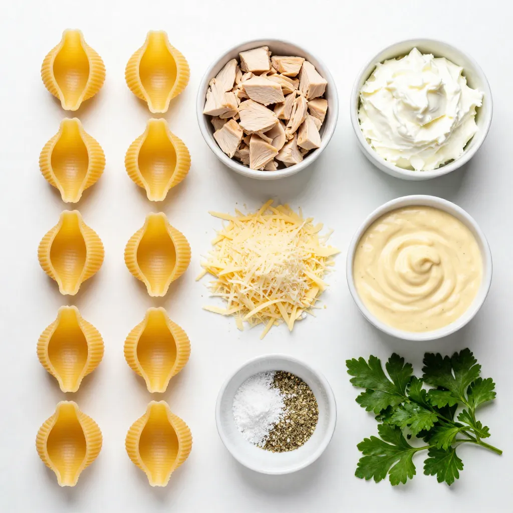 Each ingredient plays a role in making these shells rich and creamy. The jumbo pasta shells are perfect for holding the filling. Cooked chicken gives a nice protein boost. Ricotta, mozzarella, and Parmesan create a creamy texture and great flavor. The Alfredo sauce ties everything together with its rich, buttery taste. Garlic powder and Italian seasoning add depth, while salt and pepper bring balance. Finally, fresh parsley adds a pop of color and freshness on top. Enjoy gathering your ingredients!