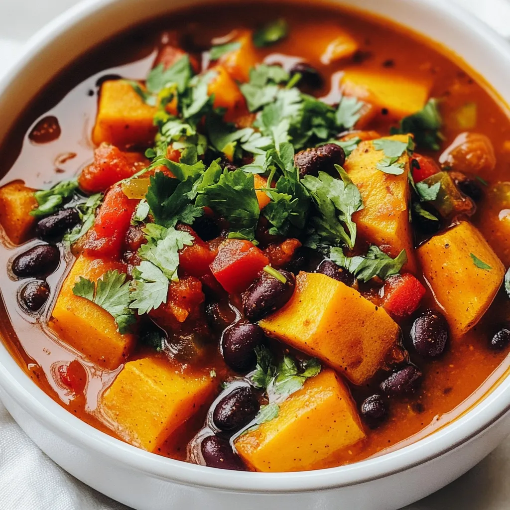 A spicy and hearty chili made with sweet potatoes and black beans, perfect for a comforting meal.