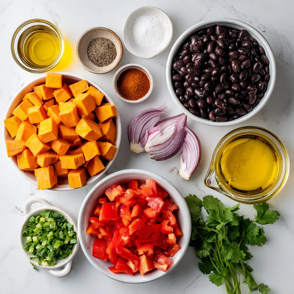 The ingredients form the heart of this chili. Sweet potatoes give it a creamy base. Black beans add protein and texture. Diced tomatoes bring in a tangy flavor. The red bell pepper and onion add sweetness. Garlic gives it a lovely aroma.