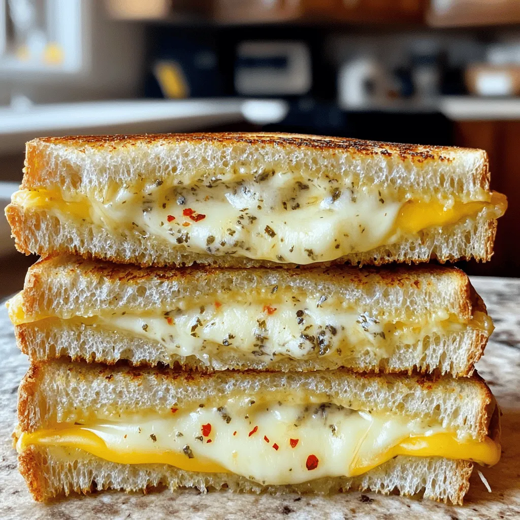 These ingredients come together to create a delicious and comforting meal. Sourdough bread gives a nice crunch and flavor. Unsalted butter adds richness, while garlic brings a tasty punch. Fresh thyme and rosemary add a lovely herbal note that makes this sandwich extra special.