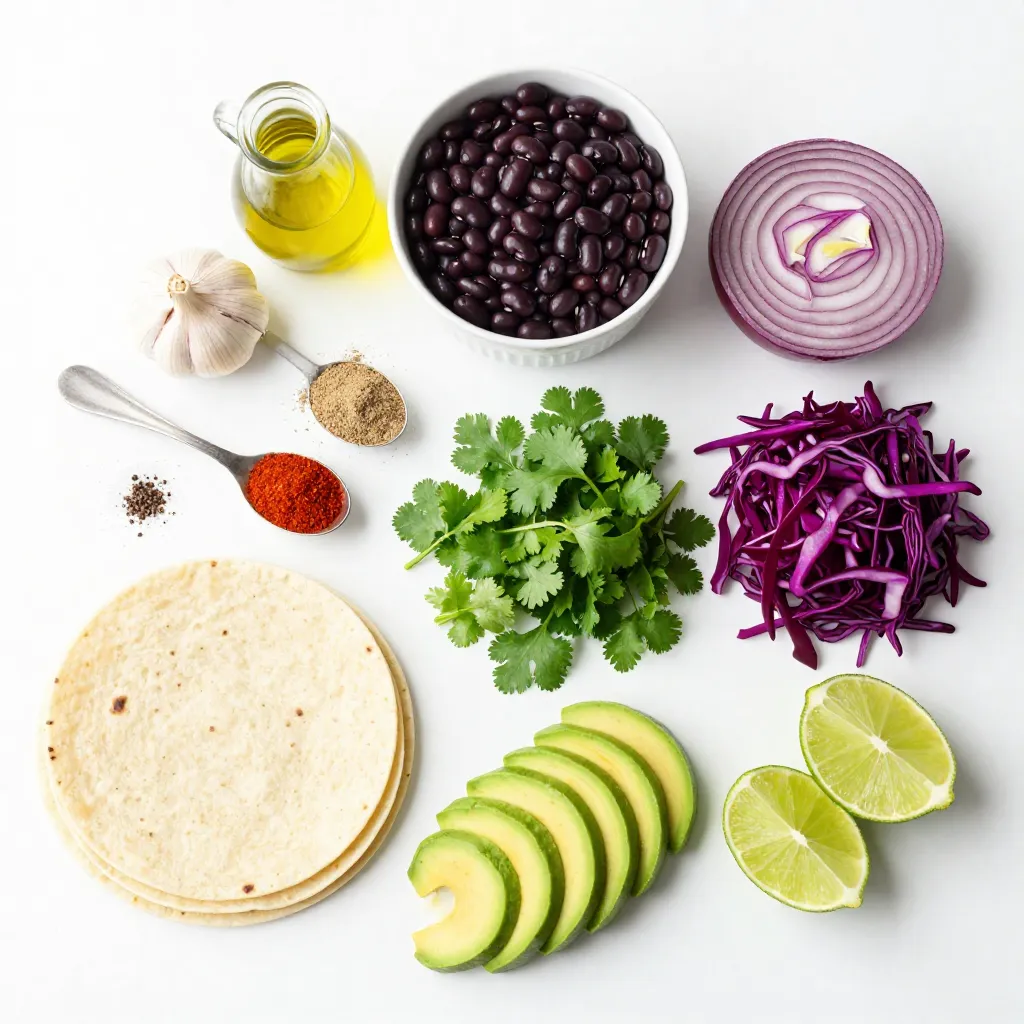 Main ingredients for Spicy Black Bean Street Tacos