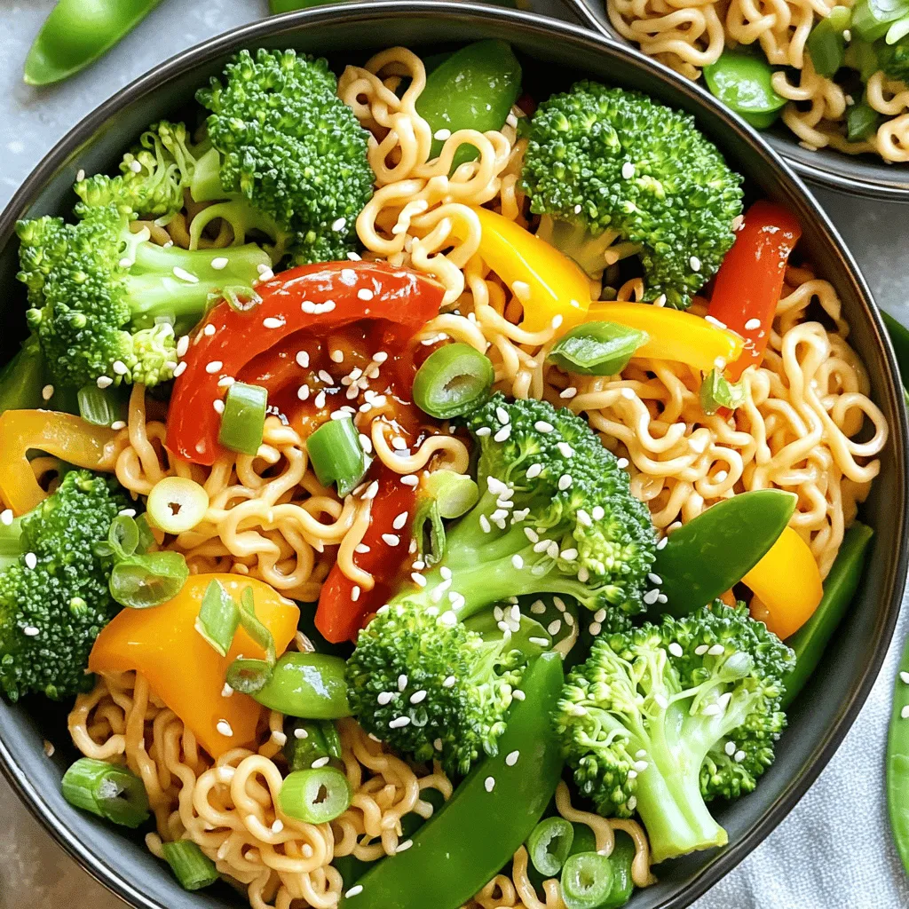 ![To make a tasty spicy ramen noodle stir fry, gather these ingredients: - 2 packs of instant ramen noodles (discard the seasoning packets) - 2 tablespoons vegetable oil - 1 cup sliced bell peppers (red, yellow, and green for color) - 1 cup broccoli florets - 1 cup snap peas - 1 small red onion, thinly sliced - 2 cloves garlic, minced - 1 tablespoon ginger, grated - 2-3 tablespoons sriracha (adjust to taste) - 2 tablespoons soy sauce - 1 tablespoon sesame oil - 1 tablespoon honey (or maple syrup for vegan option) - 2 green onions, finely sliced - Sesame seeds for garnish You can swap some ingredients if needed. Here are a few ideas: - Use any type of noodle instead of ramen, like udon or soba. - If you can't find snap peas, try using green beans or zucchini. - For a gluten-free option, choose gluten-free soy sauce. - In place of honey, use agave syrup for a vegan choice. - Fresh herbs like cilantro or basil can add a new flavor twist. Fresh vegetables make your stir fry shine. Here are tips to pick the best: - Look for bright colors. Vibrant veggies taste better! - Choose firm bell peppers without soft spots. - Pick broccoli with tight florets that are deep green. - For snap peas, select ones that are crisp and bright. - Always check for freshness. Avoid wilting or yellowing leaves. You can find the Full Recipe for all the details on how to cook this delicious dish! To start, cook the ramen noodles. Boil water in a pot. Add the noodles and cook them for about 3-4 minutes. You want them tender but not mushy. Drain the noodles and set them aside. Next, heat vegetable oil in a large pan or wok over medium-high heat. Add the sliced red onion first. Sauté it for about 2-3 minutes until it softens. Then, add minced garlic and grated ginger. Stir for 30 seconds. This will make your kitchen smell amazing! Now, toss in the sliced bell peppers, broccoli florets, and snap peas. Stir-fry these veggies for 4-5 minutes. They should be bright and crisp. You want to keep that fresh taste! Once the veggies are ready, it's time to add flavor. Stir in the cooked ramen noodles. Then, add sriracha, soy sauce, sesame oil, and honey. Mix everything well. Make sure the noodles are coated in that tasty sauce. Cook for an extra 2-3 minutes. This helps all the flavors blend together. Finally, remove the pan from heat. Sprinkle with sliced green onions and sesame seeds. Serve your spicy ramen noodle stir fry hot. Enjoy your meal! For the full recipe, check out the earlier section. To make your dish really spicy, use more sriracha. Start with two tablespoons and taste. If you want more heat, add another tablespoon. You can also add chopped fresh chili peppers. Jalapeños or Thai bird chilies work well. Just be careful; they pack a punch! Another option is to add a sprinkle of chili flakes while cooking. They add great flavor along with the heat. Stir-frying is all about high heat and quick cooking. Use a large pan or wok to give your ingredients space. Heat the oil until it shimmers before adding food. This helps to sear the veggies quickly. Cut your vegetables into similar sizes for even cooking. Stir constantly to avoid burning. Keep an eye on the color; you want bright and crisp veggies. One common mistake is not prepping ingredients first. Always chop everything before cooking. This saves time and helps the dish cook evenly. Another mistake is overcrowding the pan. If you add too much at once, the food will steam instead of fry. Finally, don’t skip the sauces. They bring flavor and moisture to the noodles. Make sure to coat them well for the best taste. For the full recipe, check out the detailed steps above! {{image_2}} You can easily make this dish vegetarian or vegan. For a vegetarian option, just skip the meat. Use tofu or tempeh instead. Both add protein and texture. If you're vegan, replace honey with maple syrup. This keeps the sweetness while staying plant-based. You can also add more veggies like carrots, mushrooms, or spinach for extra flavor and nutrients. Adding protein boosts the dish's heartiness. For chicken, slice it thinly and cook it first. Once it's golden, remove it and set aside. Then, follow the steps to fry the veggies. For shrimp, add them when the veggies are almost done. They cook fast, so watch them closely. For tofu, press it to remove water. Cube it and cook until golden before adding the vegetables. Each protein offers a unique taste that enhances your stir fry. You can switch up the sauces to change the dish's flavor. Instead of sriracha, try chili paste or gochujang for a different kick. You can also add a splash of rice vinegar for tanginess. If you want a sweeter taste, use teriyaki sauce or hoisin sauce. Feel free to experiment with sauces to find your perfect blend. The [Full Recipe] offers a great base to start your flavor journey. To keep your spicy ramen noodle stir fry fresh, store it in an airtight container. This helps prevent moisture and keeps the flavors intact. Let the stir fry cool down before sealing the container. You can also divide it into smaller portions for easy meals later. When you're ready to eat, reheating is simple. Place your leftovers in a pan over medium heat. Add a splash of water or broth to help steam the noodles and veggies. Stir occasionally until everything is hot. You can also use the microwave. Heat in short bursts of 30 seconds, stirring in between. Your spicy ramen noodle stir fry can last in the fridge for up to three days. If you want to keep it longer, consider freezing it. In the freezer, it can stay fresh for up to two months. Just remember to thaw it overnight in the fridge before reheating. Enjoy your meal anytime! To reduce the heat, cut back on sriracha. Use one tablespoon instead of two. You can also add more honey to balance the flavor. Another option is to mix in some coconut milk. This will add creaminess and cut the spice. Yes, you can use any noodles you enjoy. Rice noodles or udon noodles work well. Just cook them accordin