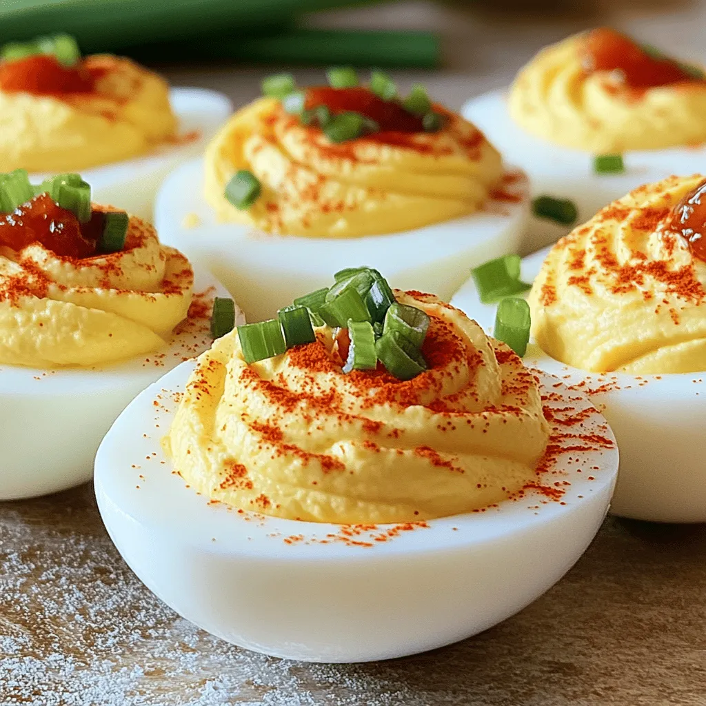 The main ingredients in spicy Sriracha deviled eggs are simple yet powerful. The eggs provide a creamy base. Mayonnaise adds richness and smoothness. Sriracha delivers that fiery kick. Dijon mustard gives a tangy note, while lemon juice brightens the flavor.