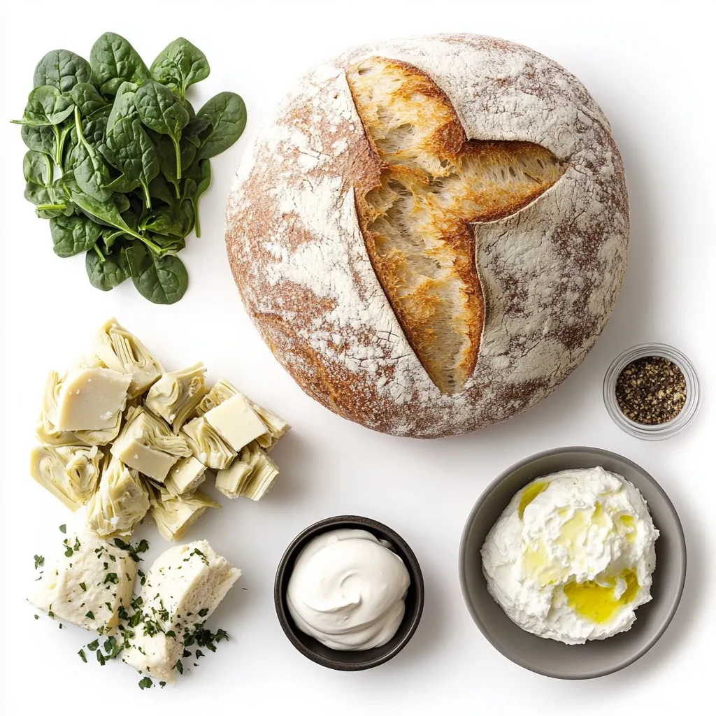 The main star here is the sourdough bread. It has a nice, crusty texture. This bread holds our filling well while adding great flavor. Next, we have spinach and artichokes. Both add a fresh taste and lovely green color to our dish. Cream cheese and sour cream make it rich and creamy. The mozzarella and Parmesan provide a cheesy, gooey goodness. These cheese varieties melt perfectly, making every bite a delight.