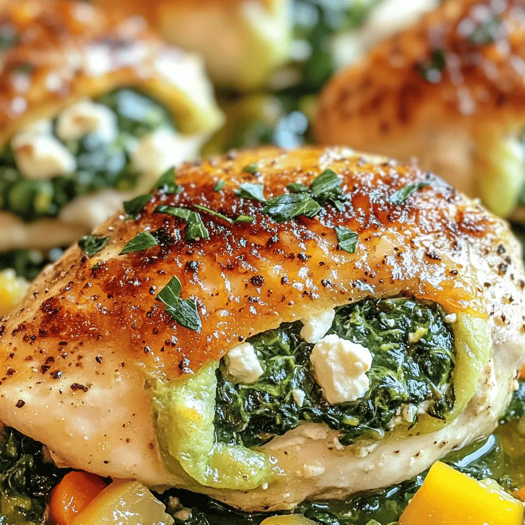 You can add different flavors to your spinach feta stuffed chicken. Try mixing in sun-dried tomatoes for a burst of sweetness. You can also add chopped artichokes for a tangy twist. Want a spicy kick? Add some red pepper flakes to the filling. These small changes can make a big difference.