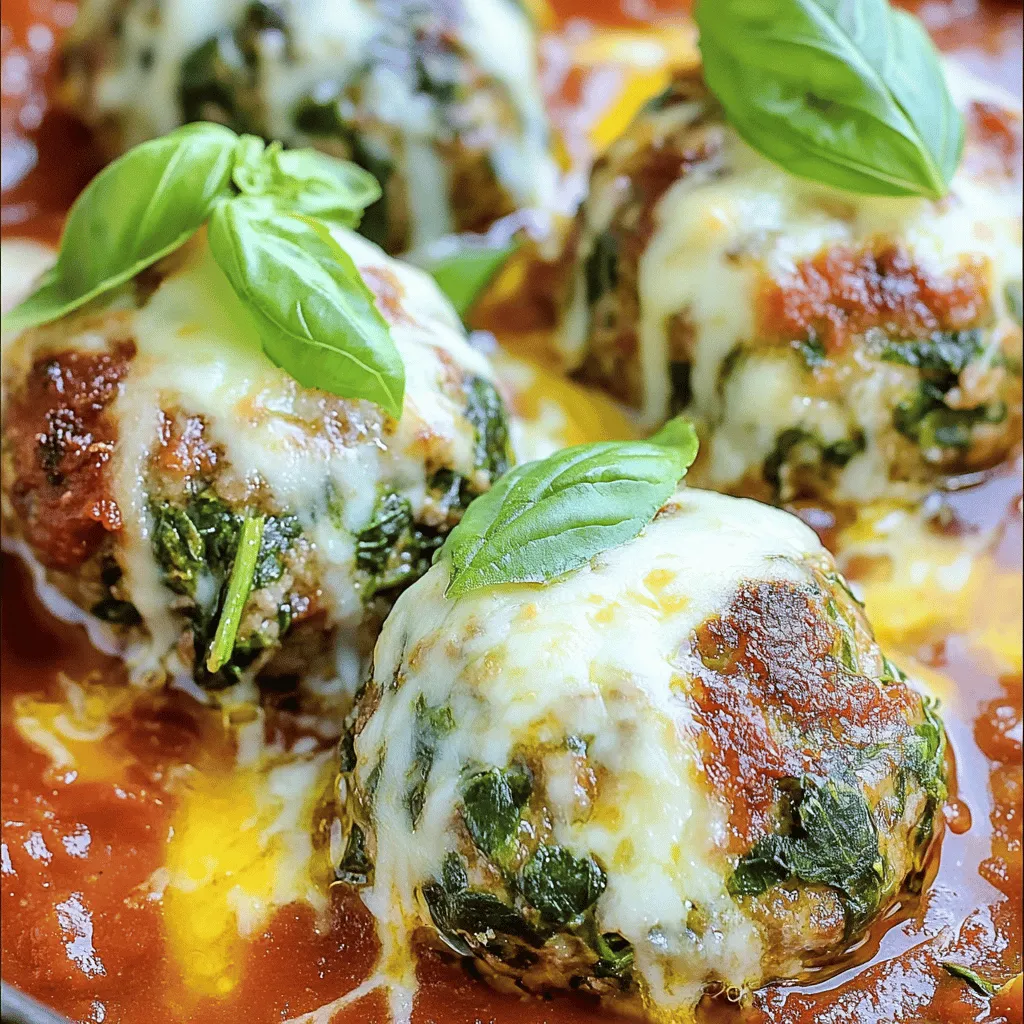 To make the Spinach Garlic Meatballs with Mozzarella, you need fresh and flavorful ingredients. The ground beef or turkey forms the base of the meatballs. I love using fresh spinach for a bright, nutritious punch. Garlic adds a wonderful aroma and taste that you can’t resist. Don’t forget the mozzarella cheese! It gives a creamy, gooey texture when melted.