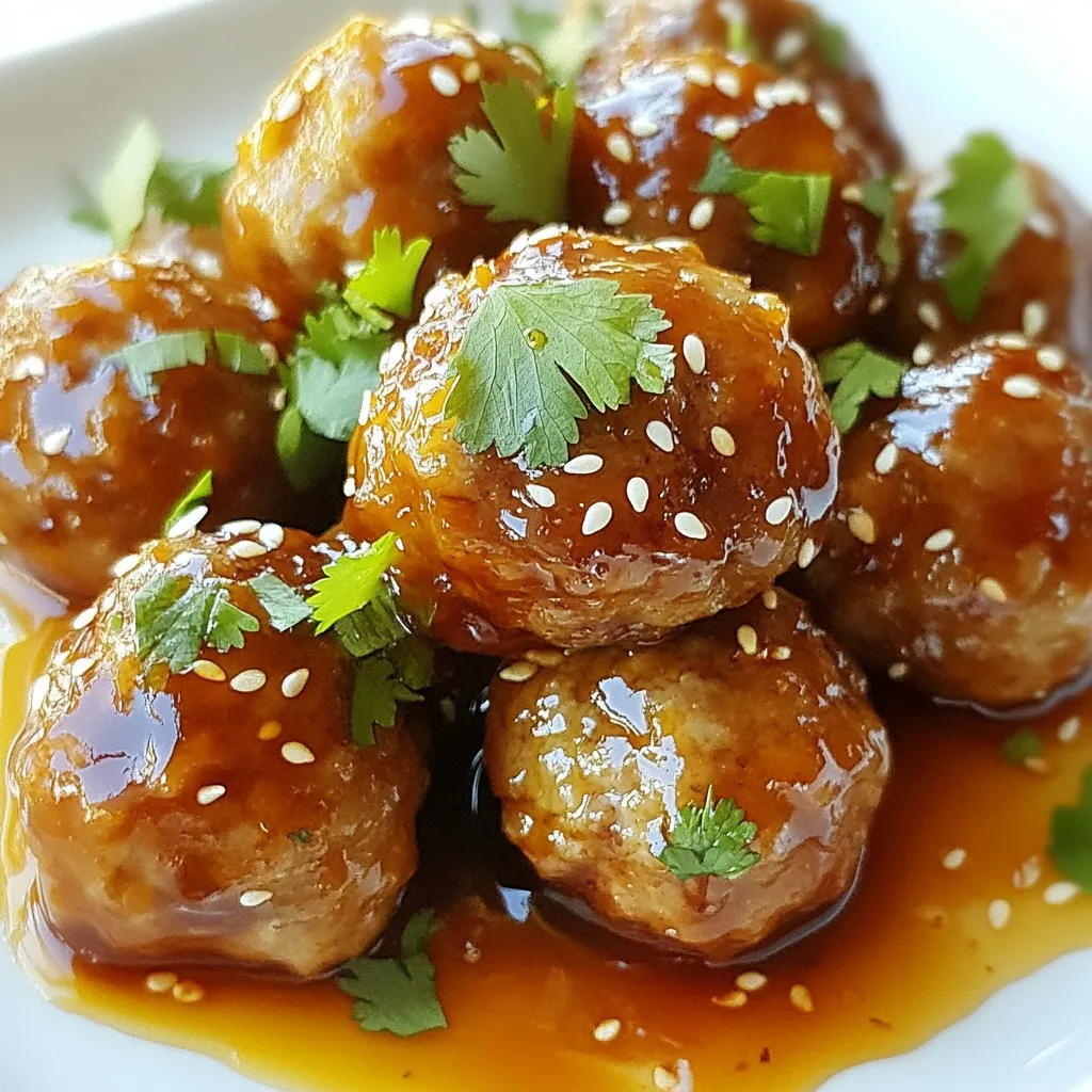 These meatballs shine when served hot. Place them on a platter and sprinkle sesame seeds on top. Fresh cilantro adds a nice pop of color and taste. Drizzle any leftover glaze around the plate. This makes for a beautiful presentation. You can serve them with rice or noodles. They also work well in a sandwich or on skewers for a fun twist.