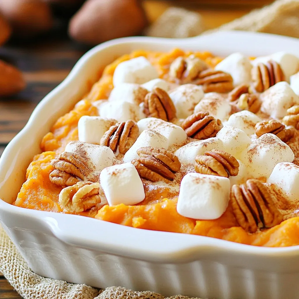 Making it ahead of time is easy. Prepare the sweet potato mix and store it in the fridge overnight. Just add the marshmallows before baking. This saves time and makes serving a breeze.