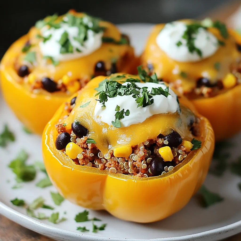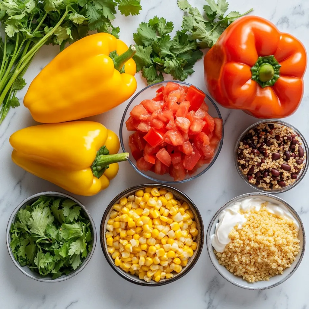 These ingredients come together to create a flavorful meal that is easy to prepare. Each component adds its own taste and texture. The bell peppers serve as a tasty vessel, while the ground meat offers protein. Quinoa or rice provides substance, and the beans and corn add fiber and sweetness.