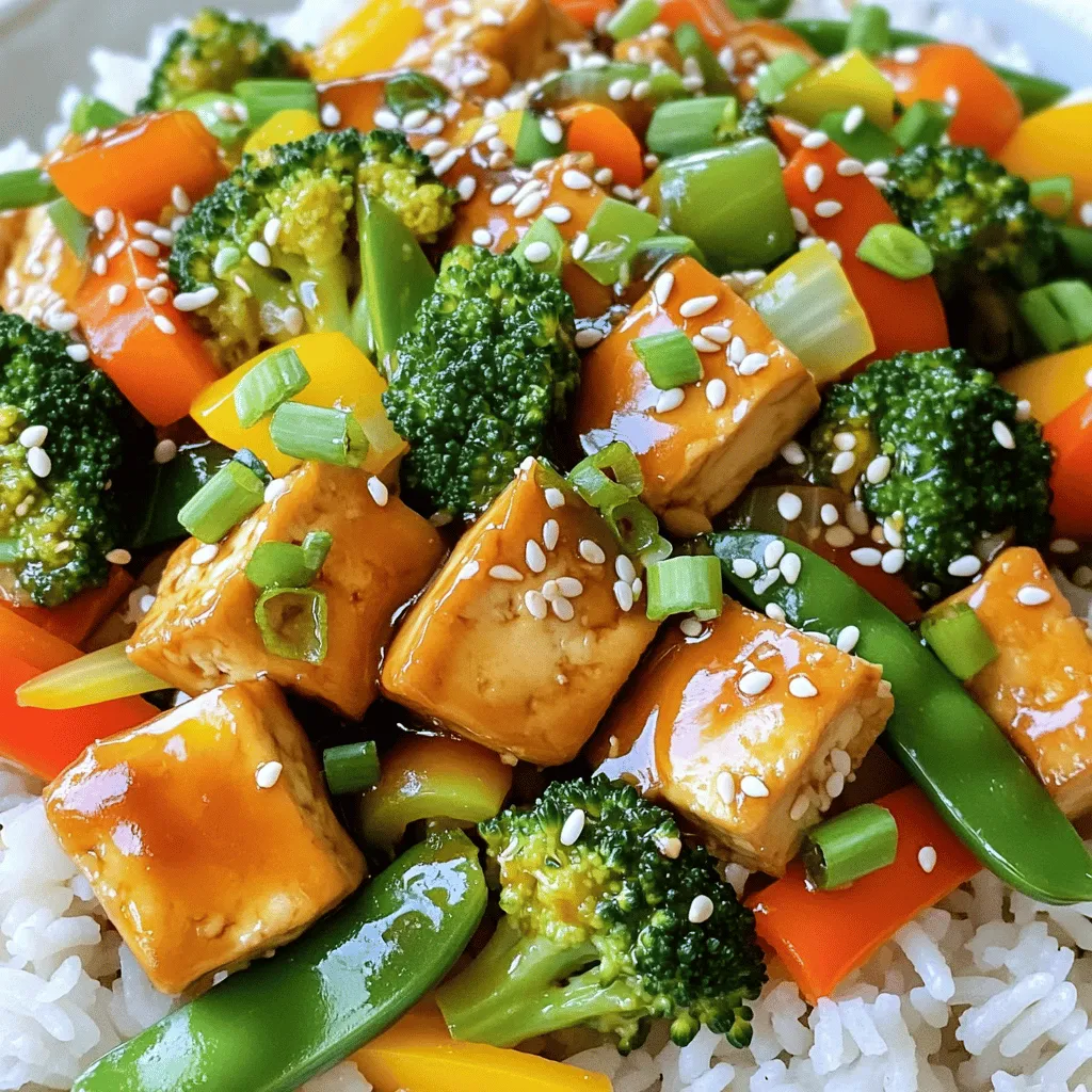 To create a tasty teriyaki glazed tofu stir fry, you need these key ingredients: - 1 block (14 oz) firm tofu, drained and pressed - 2 tablespoons cornstarch - 2 tablespoons vegetable oil - 2 cups mixed vegetables (bell peppers, broccoli, snap peas, and carrots) - 3 green onions, chopped - 2 cloves garlic, minced - 1 tablespoon fresh ginger, grated - 1/4 cup teriyaki sauce (store-bought or homemade) - 1 tablespoon sesame seeds, for garnish - Cooked jasmine rice or noodles, for serving These ingredients make a delicious meal. The firm tofu gives protein, while the vegetables add color and crunch. The teriyaki sauce brings sweet and savory notes that tie everything together. You can easily change this recipe to fit your tastes. Here are some optional ingredients: - Mushrooms for an earthy flavor - Broccoli for extra nutrients - Baby corn for added crunch - Red pepper flakes for spice Feel free to mix and match these ingredients. This flexibility helps you create a dish that you love. If you run out of an ingredient, don’t worry! Here are some swaps you can use: - Use silken tofu instead of firm tofu for a softer texture. - Swap cornstarch with arrowroot powder for a gluten-free option. - Use olive oil if you don’t have vegetable oil. - Try soy sauce if you can’t find teriyaki sauce. These substitutions keep your dish tasty and satisfying. You can enjoy this stir fry with what you have on hand. For the complete recipe, check out the Full Recipe. Start with a block of firm tofu. Drain it well, then press it to remove extra moisture. This helps the tofu soak up flavor and get crispy. Cut the pressed tofu into small cubes. Pat them dry with a paper towel. This step is key for achieving the best texture. In a bowl, toss the tofu cubes with cornstarch. Make sure each piece is coated evenly. This coating creates a lovely crispy layer. Heat 1 tablespoon of vegetable oil in a non-stick skillet over medium-high heat. Once hot, add the tofu cubes in a single layer. Cook them for 5-7 minutes. Turn them occasionally so they brown evenly on all sides. Once they are golden and crispy, take them out and set aside. In the same skillet, add another tablespoon of oil. Add minced garlic and grated ginger. Sauté them for about 30 seconds. This will bring out their wonderful aroma. Next, toss in your mixed vegetables. Stir-fry them for about 4-5 minutes. You want them tender but still crisp. After that, return the crispy tofu to the skillet. Pour the teriyaki sauce over everything and stir well. Cook for another 2-3 minutes, until heated through. Finally, fold in chopped green onions for extra flavor. For the full recipe, check out the above details. To get the best glaze on your tofu, use cornstarch. This helps the tofu crisp up nicely. When you add the teriyaki sauce, make sure your stir fry is hot. The sauce will thicken and coat the tofu evenly. Stir it well to cover every piece. For a little extra flavor, add a splash of soy sauce. For a colorful and tasty stir fry, choose quick-cooking vegetables. I love using: - Bell peppers - Broccoli - Snap peas - Carrots These veggies add crunch and sweetness. You can mix and match based on what you have. Just cut them into bite-sized pieces to cook evenly. Serve your teriyaki glazed tofu stir fry over jasmine rice or noodles. This adds a nice base. To make it even better, sprinkle sesame seeds on top. You can also add fresh green onions for a pop of color. For a fun twist, try adding pineapple chunks for added sweetness. For the full recipe, check out the cooking instructions above. {{image_2}} This recipe is already vegan and gluten-free if you use gluten-free teriyaki sauce. Look for brands that clearly state they are gluten-free. Some sauces might contain wheat, so check the label. You can also make your own teriyaki sauce. Just mix soy sauce, rice vinegar, and a bit of sugar. If you want to change it up, swap tofu for other proteins. Tempeh works great and has a firmer texture. Seitan is another good choice, offering a meaty bite. For a non-vegan option, chicken or shrimp can also shine in this stir fry. Just be sure to adjust cooking times for different proteins. To make your dish pop, add spices like chili flakes or garlic powder. A splash of lime juice can brighten the flavors. If you want a smoky taste, try adding a bit of smoked paprika. You can also mix in other sauces, like sriracha or hoisin, for extra flavor. Don't be afraid to experiment! To store your teriyaki glazed tofu stir fry, you need a few simple steps. First, let the dish cool down to room temperature. Next, transfer it to an airtight container. This keeps the flavors fresh. Place the container in the fridge. It will last about 3 to 4 days. If you don't plan to eat it soon, consider freezing it. When reheating, I recommend using a skillet. Heat it over medium heat. Add a splash of oil to prevent sticking. Place the stir fry in the skillet and stir gently. This helps keep the tofu crispy. You can also microwave it for about 1-2 minutes. Stir halfway through to ensure even heating. If you want to freeze your stir fry, it’s easy. Pack the cooled dish in a freezer-safe container. Make sure to leave some space for expansion. It can stay in the freezer for up to 2 months. To enjoy later, thaw it overnight in the fridge. Then, reheat it as mentioned above. This makes meal prep simple and efficient! For the full recipe, check out the cooking instructions. You can make Teriyaki sauce with simple ingredients. Mix soy sauce, sugar, and mirin. Add garlic and ginger for extra flavor. Heat this mixture on the stove until it thickens. This makes a tasty sauce for your stir fry. You can find the full recipe at the end of this article. Firm or extra-firm tofu works best for stir fry. This type holds its shape and gets crispy. Silken tofu is too soft and will break apart. Press the tofu to remove excess water before cooking. This helps it absorb more flavor and achieve the right texture. Yes, you can use