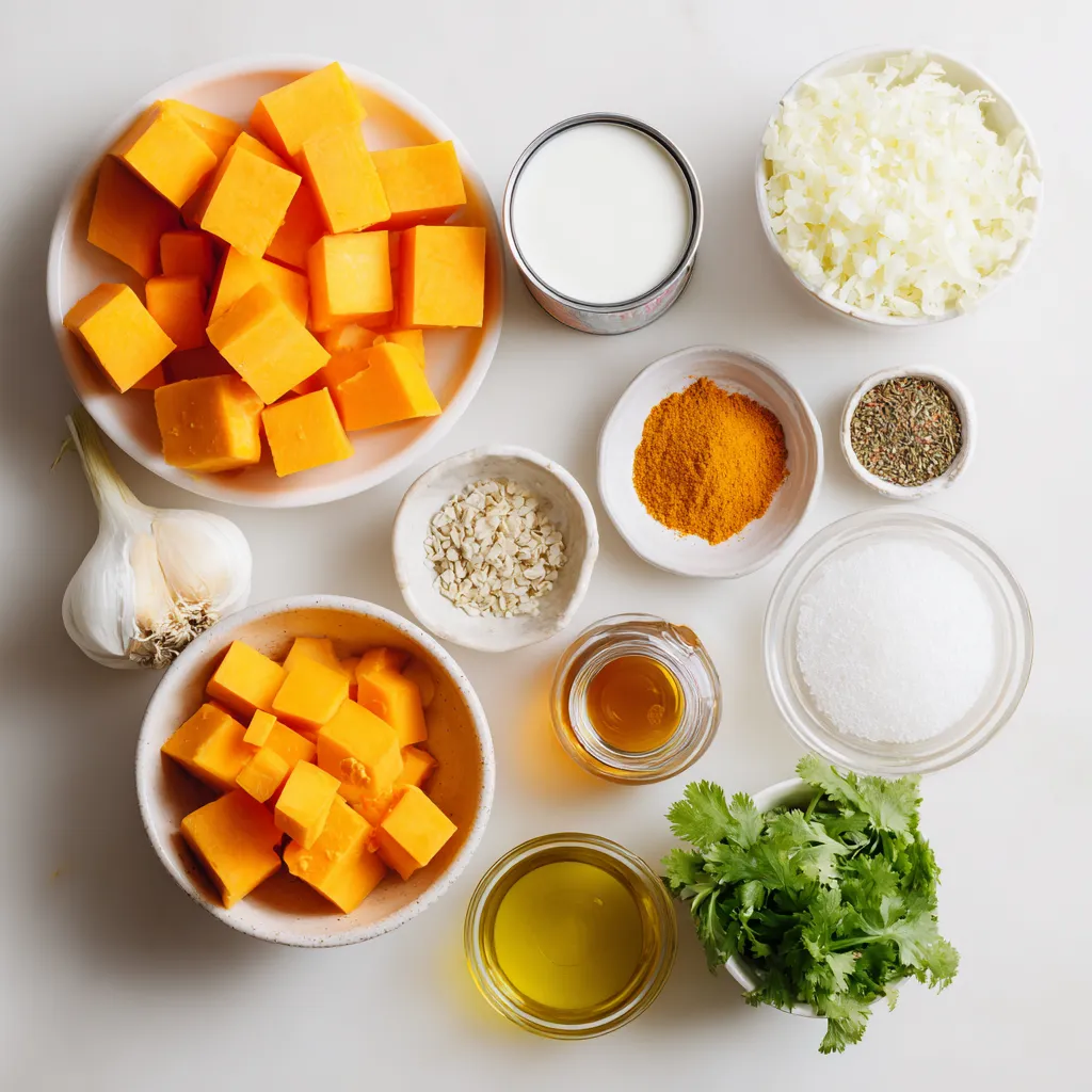 A rich and creamy soup made with butternut squash and coconut milk, flavored with ginger and spices.