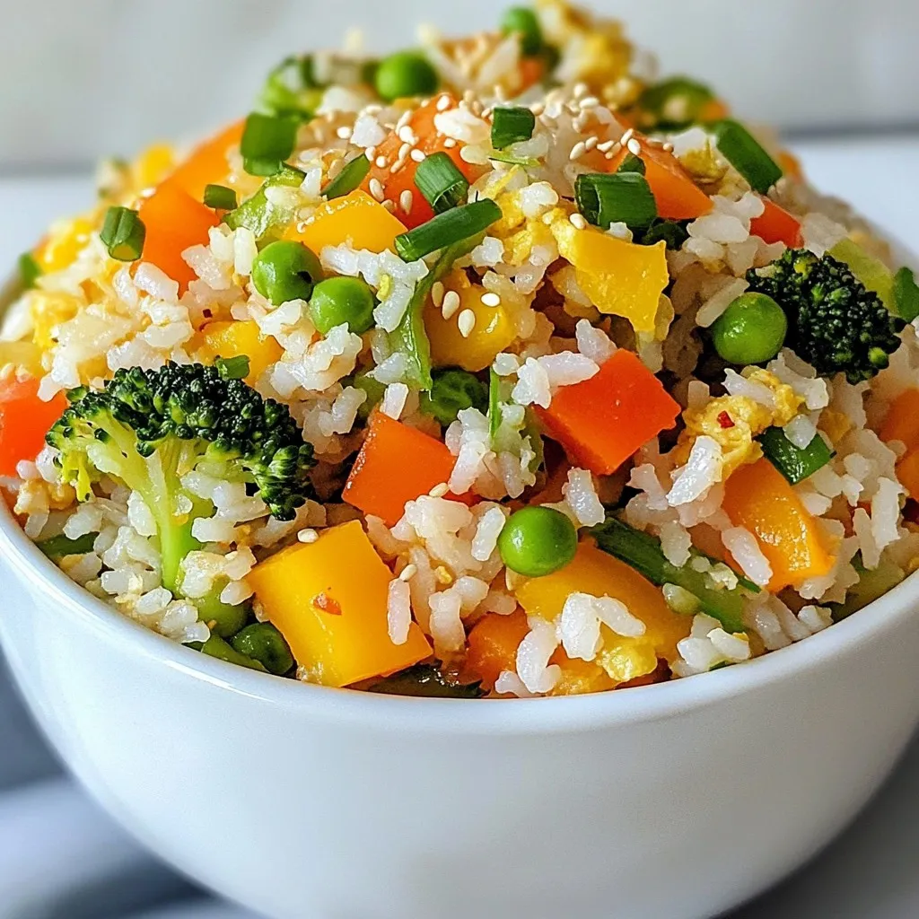 A colorful and nutritious fried rice dish packed with vegetables and flavor.