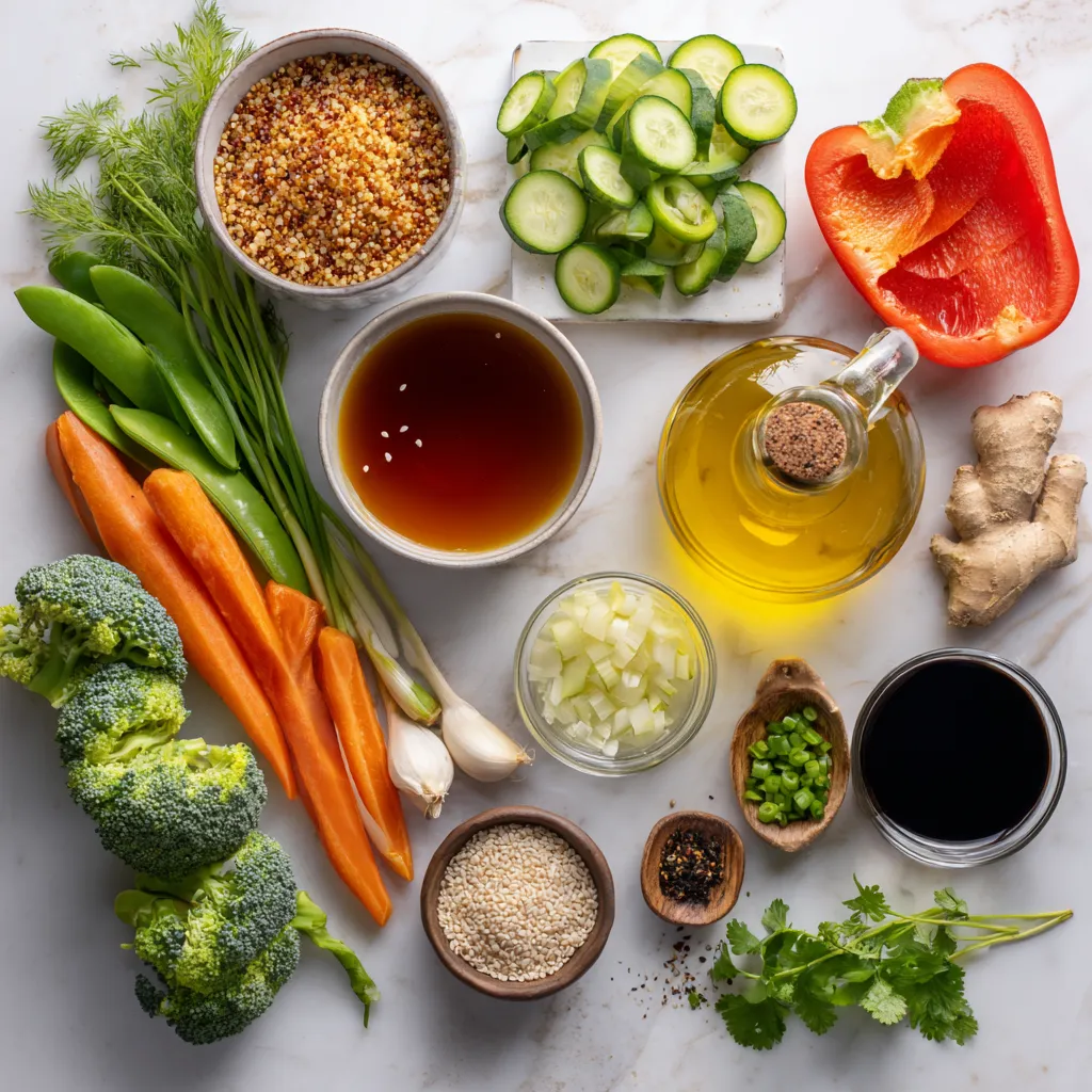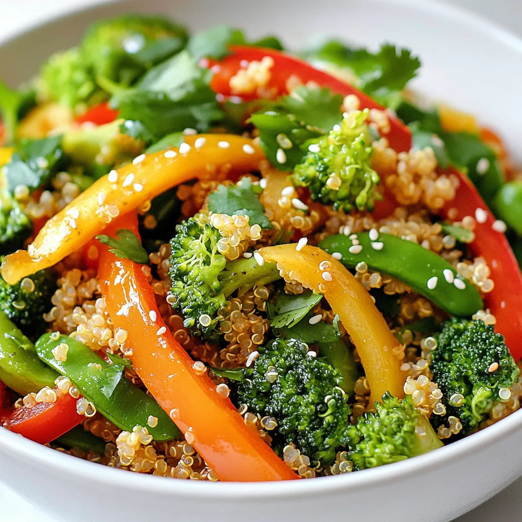 A colorful and nutritious stir fry packed with vegetables and quinoa.