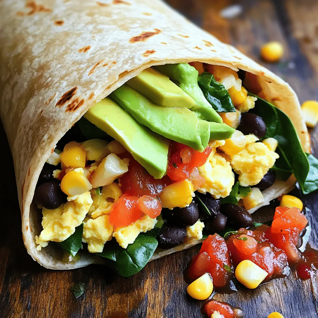 To make a veggie packed breakfast burrito, gather these tasty items: - 4 large whole wheat tortillas - 1 cup black beans, drained and rinsed - 1 cup spinach, roughly chopped - 1 medium bell pepper, diced (any color) - 1 small zucchini, diced - 1/2 cup corn kernels (fresh or frozen) - 4 eggs (or flax eggs for a vegan option) - 1/2 teaspoon ground cumin - 1/2 teaspoon smoked paprika - Salt and pepper to taste - 1 avocado, sliced - 1/2 cup shredded cheese (cheddar or a vegan alternative) - Fresh cilantro, for garnish (optional) - Salsa or hot sauce, for serving You can play with flavors by adding: - Diced onions or garlic for extra zest - Mushrooms for a meaty texture - Jalapeños for heat - Different cheeses like feta or pepper jack - A squeeze of lime for brightness Feel free to mix and match! This burrito is all about your taste. Enjoy getting creative in the kitchen! Start by gathering your ingredients. You will need whole wheat tortillas, black beans, spinach, bell pepper, zucchini, corn, eggs, spices, cheese, and avocado. Wash and chop the veggies. Dice the bell pepper and zucchini into small pieces. Roughly chop the spinach. If you use fresh corn, cut it off the cob. Heat a large skillet over medium heat. Add a little olive oil to the pan. Once the oil is warm, add the diced bell pepper and zucchini. Sauté for about 3-4 minutes until they start to soften. Next, stir in the spinach and corn. Cook until the spinach wilts, which takes about 2 minutes. Then add the black beans, cumin, smoked paprika, salt, and pepper. Mix everything well and cook for 2 more minutes to heat through. In a separate bowl, whisk the eggs until smooth. Pour the eggs into the skillet with the veggies. Stir gently until the eggs cook through and become scrambled. This will take about 3-5 minutes. Once done, remove the skillet from heat. Warm the tortillas in a dry skillet or microwave until they are soft and pliable. For each burrito, place a portion of the veggie-egg mixture in the center of a tortilla. Add sliced avocado and a sprinkle of cheese on top. Fold the sides of the tortilla in, then roll it up from the bottom to enclose the filling. If you like, you can toast the burritos seam-side down in the skillet for 1-2 minutes on each side to add crunch. Serve these warm with salsa or hot sauce. For a fresh touch, garnish with cilantro. Enjoy your veggie packed breakfast burrito! To cook perfect eggs, start with a non-stick skillet. Heat it on medium. Add a little oil to prevent sticking. Crack your eggs into a bowl and whisk them until they are mixed well. This helps create fluffy eggs. Pour the eggs into the hot skillet. Stir gently with a spatula as they cook. Remove them from heat when they are soft and slightly runny. They will keep cooking after you take them off the heat. Warm your tortillas before wrapping. This makes them soft and easy to roll. Place your filling in the center of the tortilla. Fold the sides in first, then roll from the bottom up. Make sure to tuck in the filling as you roll. This keeps everything inside. If you want a crunch, place the wrapped burrito seam-side down in a hot skillet. Toast for 1-2 minutes on each side. Garnishing adds flavor and makes your burrito look great. Sliced avocado gives creaminess. Fresh cilantro adds a nice pop of flavor. You can also sprinkle cheese on top. If you like spice, add salsa or hot sauce. This gives a nice kick to your burrito. For a unique twist, try adding some fresh lime juice. It brightens up all the flavors beautifully. For the full recipe, check out the Veggie Packed Breakfast Burrito section. {{image_2}} You can easily make this breakfast burrito vegan. Swap out the eggs for flax eggs. To make one flax egg, mix one tablespoon of flaxseed meal with two and a half tablespoons of water. Let it sit for five minutes. This mixture works like eggs in the recipe. You can also use tofu to add protein. Crumble firm tofu and sauté it with the veggies for added texture. Feel free to play with your veggie choices. Try adding mushrooms for an earthy flavor. Carrots or sweet potatoes can add sweetness and crunch. Kale can replace spinach for a heartier bite. You can even add cherry tomatoes for a juicy burst. The key is to use what you love and what’s in season. If you want more protein, consider adding cooked quinoa or lentils. These options are filling and nutritious. You can also use tempeh for a nutty taste. For meat lovers, diced chicken or turkey can work well, too. Keep in mind that the balance of flavors is essential. Choose proteins that pair well with your veggies for a delicious meal. This recipe is flexible and fun! Just mix and match to fit your taste. For the full recipe, check out the section above. To keep your veggie packed breakfast burrito fresh, place leftovers in an airtight container. You can store them in the fridge for up to three days. Be sure to let the burritos cool before sealing them. This step helps prevent sogginess. When you’re ready to enjoy your burrito again, you can reheat it easily. For the best results, use a skillet. Heat the skillet over medium heat. Place the burrito seam-side down and cook for about 3-4 minutes on each side. This method gives you a warm, crispy burrito. If you prefer the microwave, heat it for 1-2 minutes, but the texture may not be as nice. If you want to save your burritos for later, freezing is a great option. Wrap each burrito tightly in plastic wrap. Then, place them in a freezer-safe bag or container. They can last up to three months in the freezer. When you’re ready to eat, thaw in the fridge overnight and follow the reheating instructions above. Enjoy your meal prep without stress! You can find the full recipe for this delicious breakfast burrito in the article. Yes, you can make this breakfast burrito ahead of time. Prepare the filling and store it in the fridge. It stays fresh for about three days. You can also wrap the burritos and freeze them. To reheat, just heat in a skill